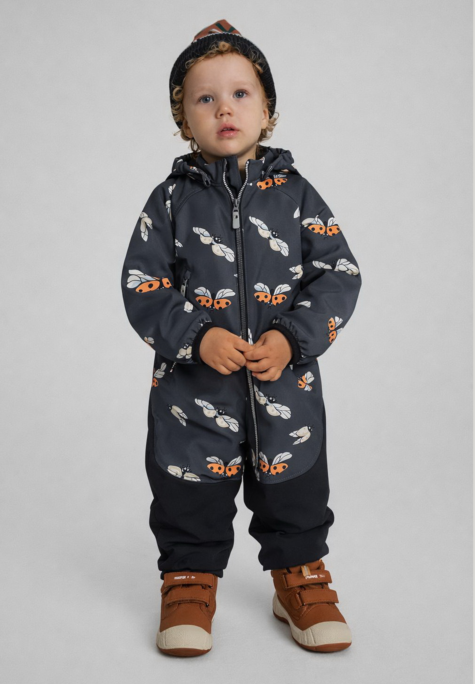 Ветрозащитный комбинезон из материала Softshell для малышей с дышащими и водоотталкивающими свойствами. Размеры начинаются от 74 см. Так что, даже самый маленький член семьи сможет вздремнуть на улице в таком уютном комбинезоне. Съемный капюшон защищает от холодного ветра и безопасен при играх. Застежка-молния по всей длине с защитой подбородка облегчает надевание. Прочные усиленные вставки в нижней части.