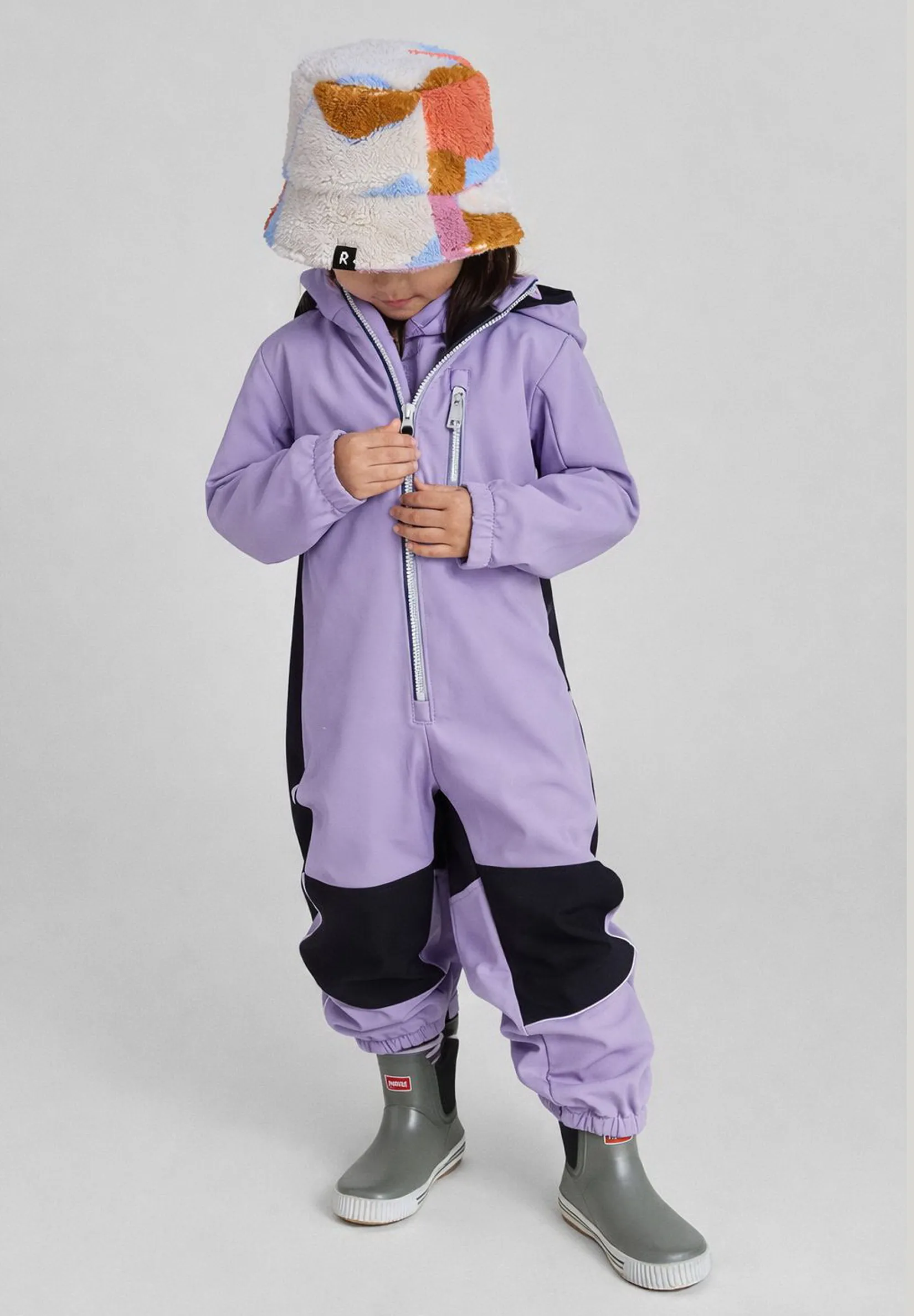 Детям нравится защитный материал Reima Softshell — он очень комфортный и эластичный. Детский комбинезон из материала Softshell надежно защищает от ветра, а также обладает непревзойденными дышащими свойствами. Эластичный материал имеет мягкую флисовую изнаночную сторону, очень приятную на ощупь. Водо- и грязеотталкивающая поверхность — и все это, естественно, без фторуглеродов. Безопасный съемный капюшон и карманы на молнии.