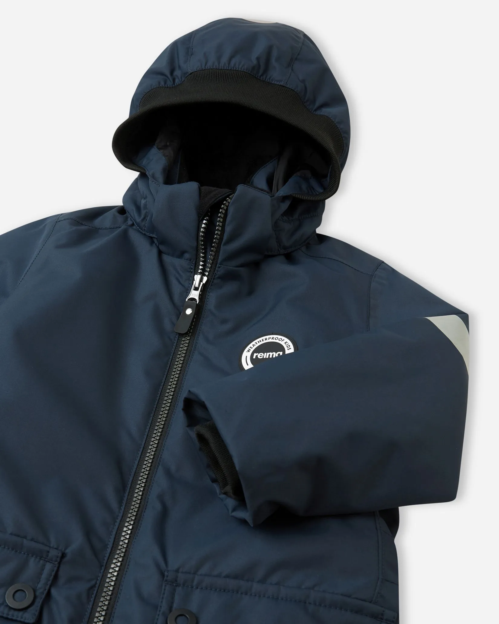 Все швы проклеены и обеспечивают водонепроницаемость. Материал имеет грязе- и водоотталкивающие свойства. Гладкая подкладка облегчает надевание. Съемный капюшон безопасен: он крепится кнопками и легко отстегивается, зацепившись за что-либо. Талия регулируется изнутри, а штрипки фиксируют манжеты брючин на месте. Два кармана с клапанами и крупные светоотражающие детали завершают ретро-образ!