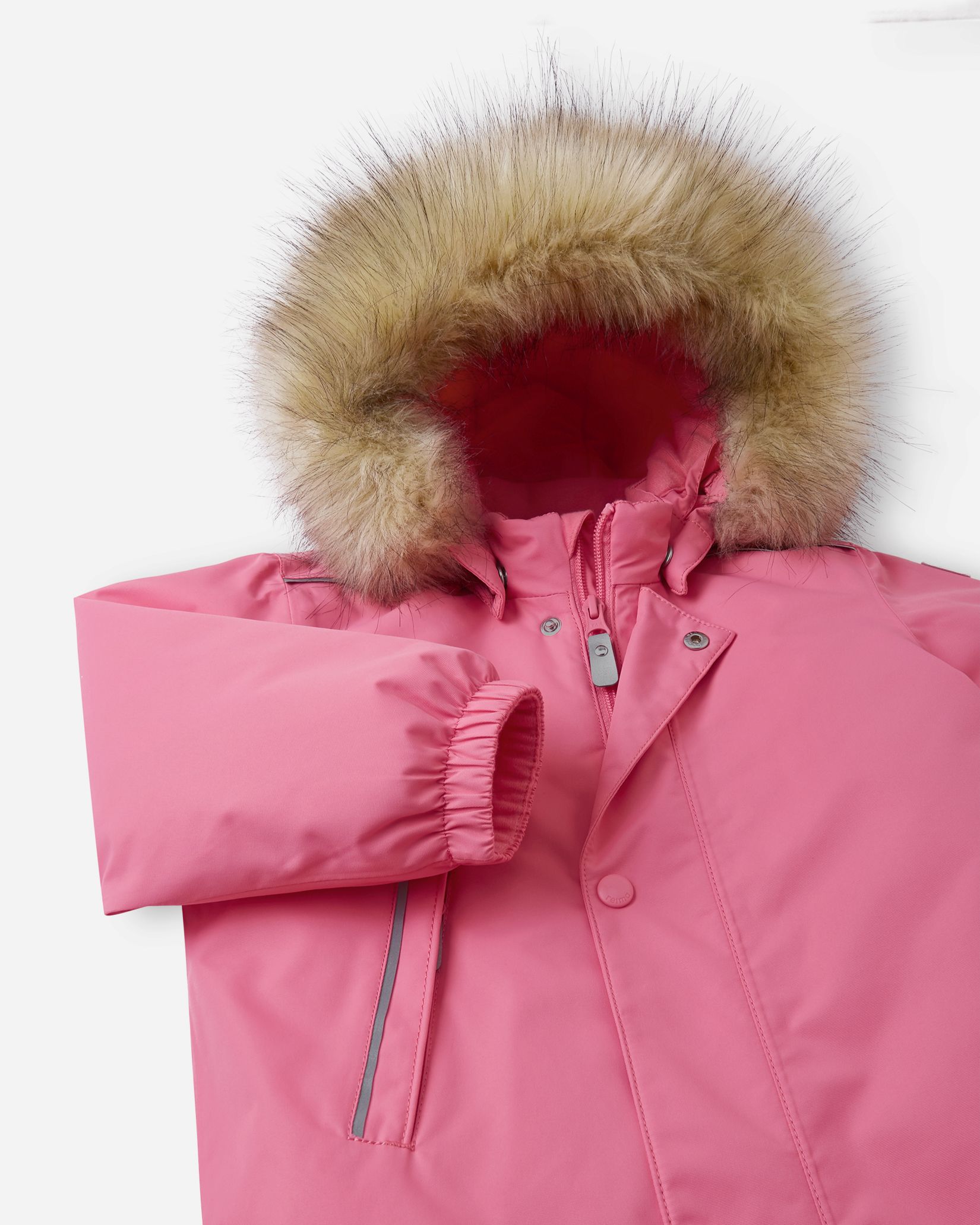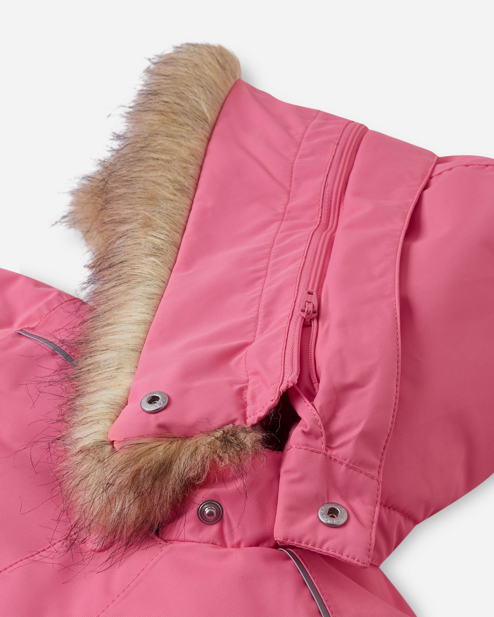 —Безопасный, съемный и регулируемый капюшон со съемной отделкой из искусственного меха