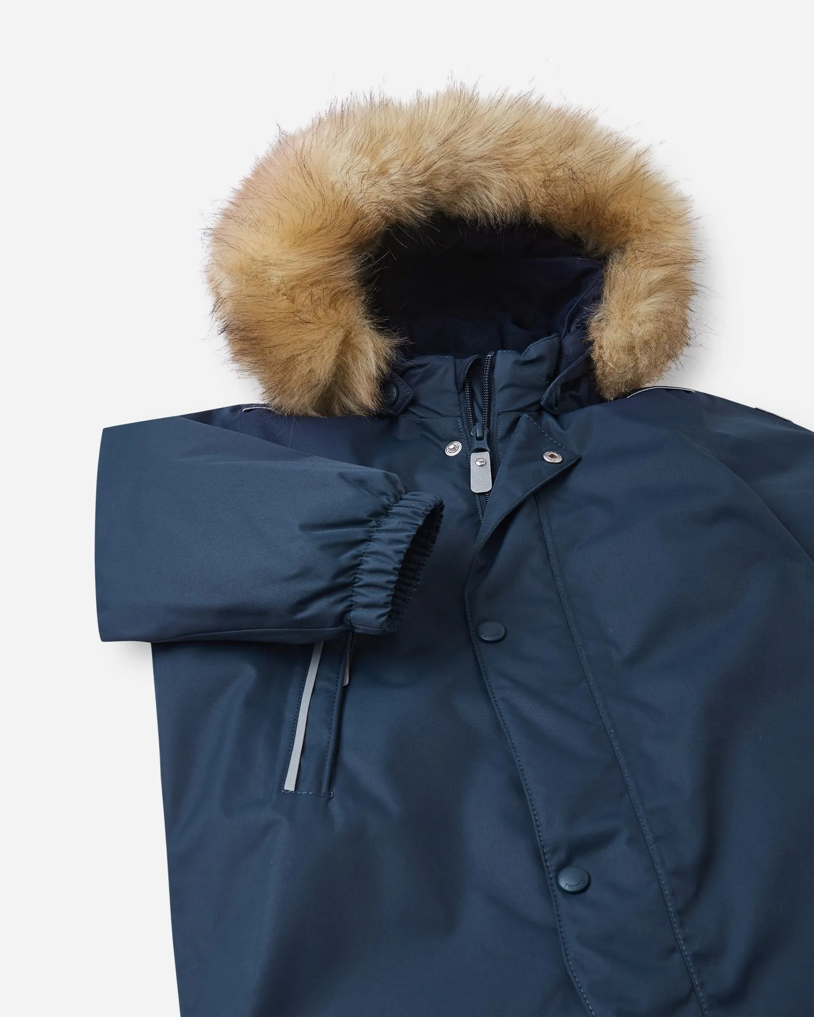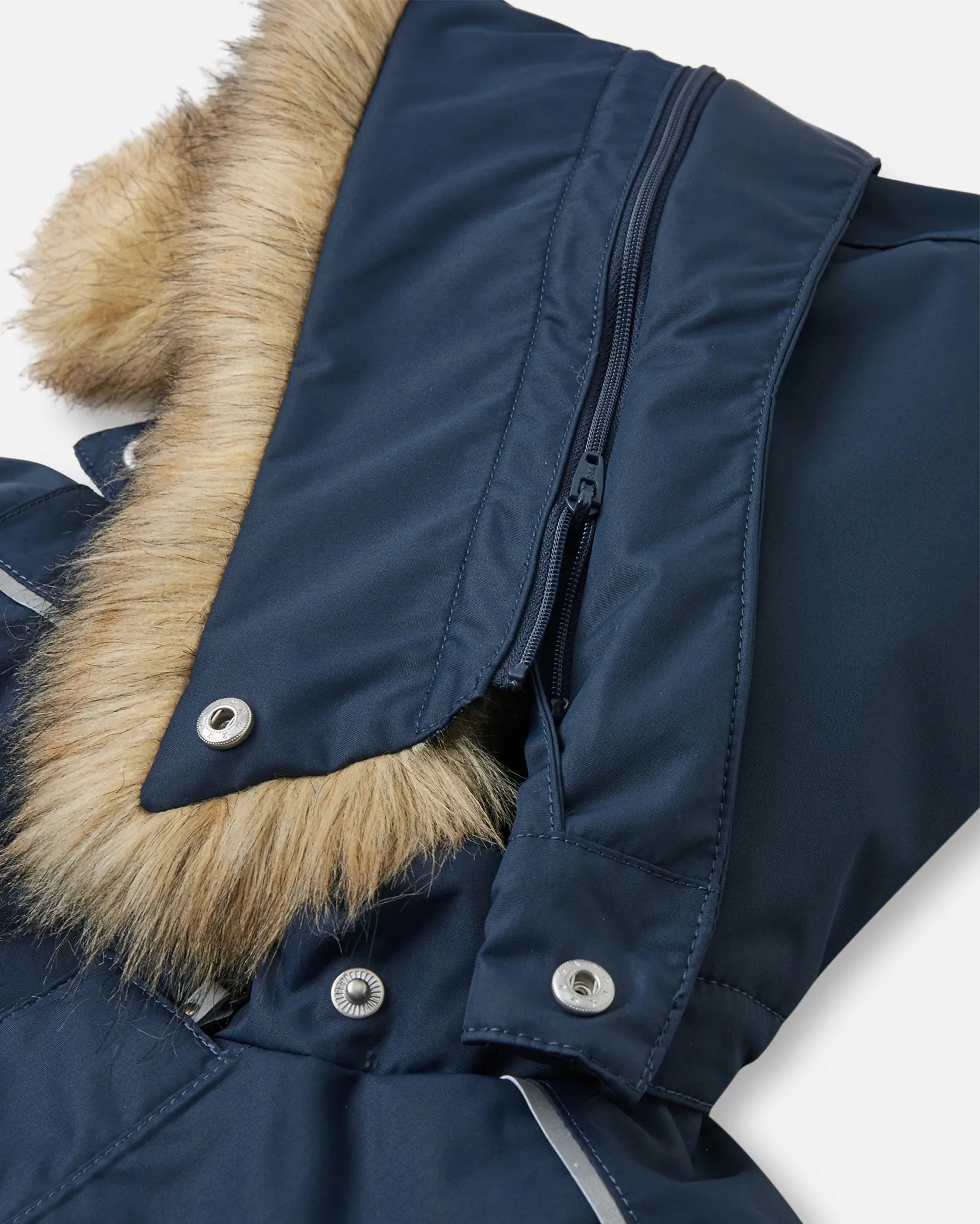—Безопасный, съемный и регулируемый капюшон со съемной отделкой из искусственного меха