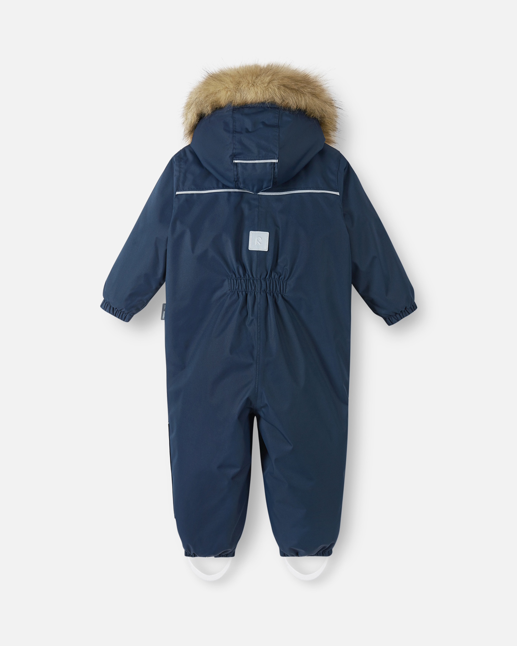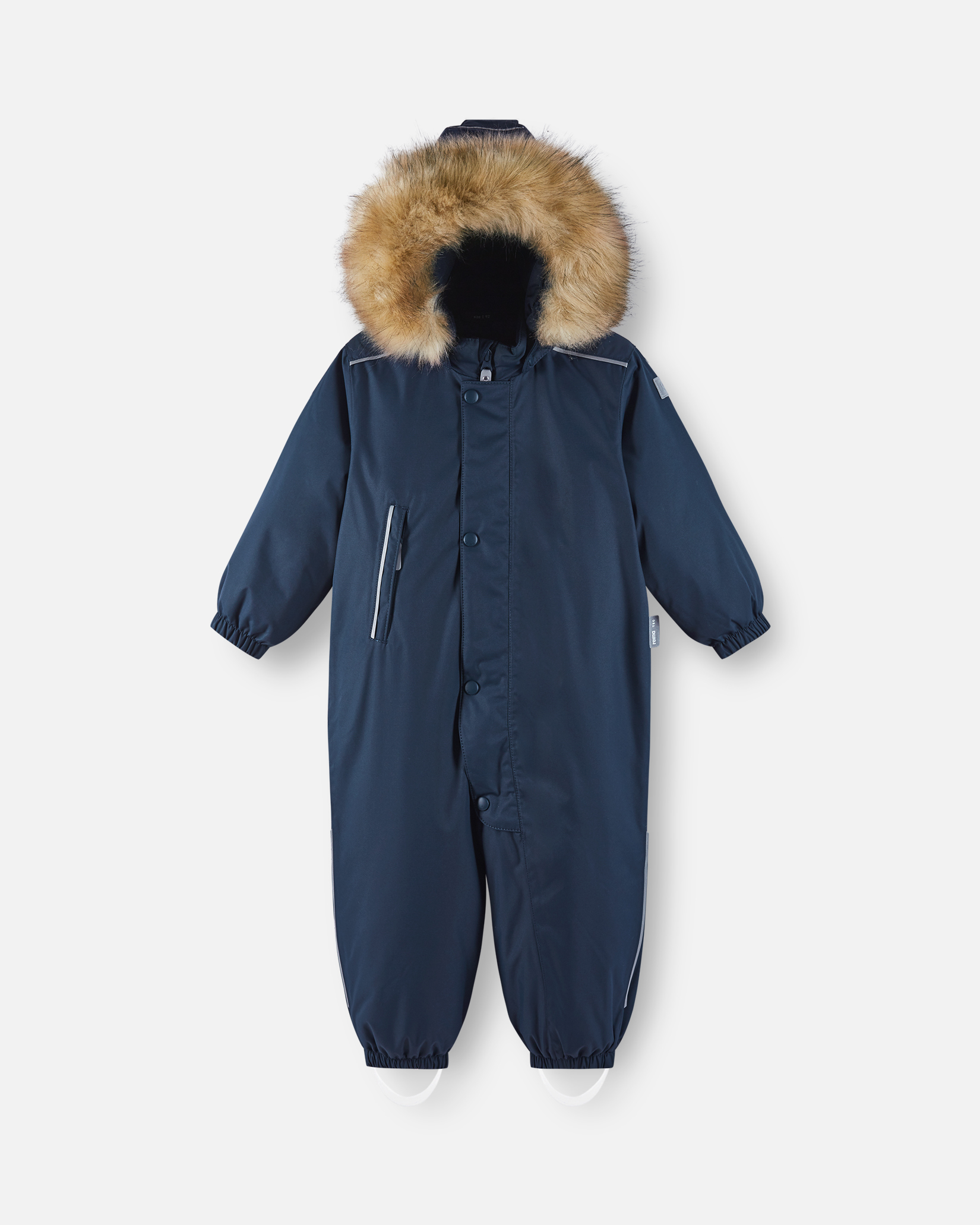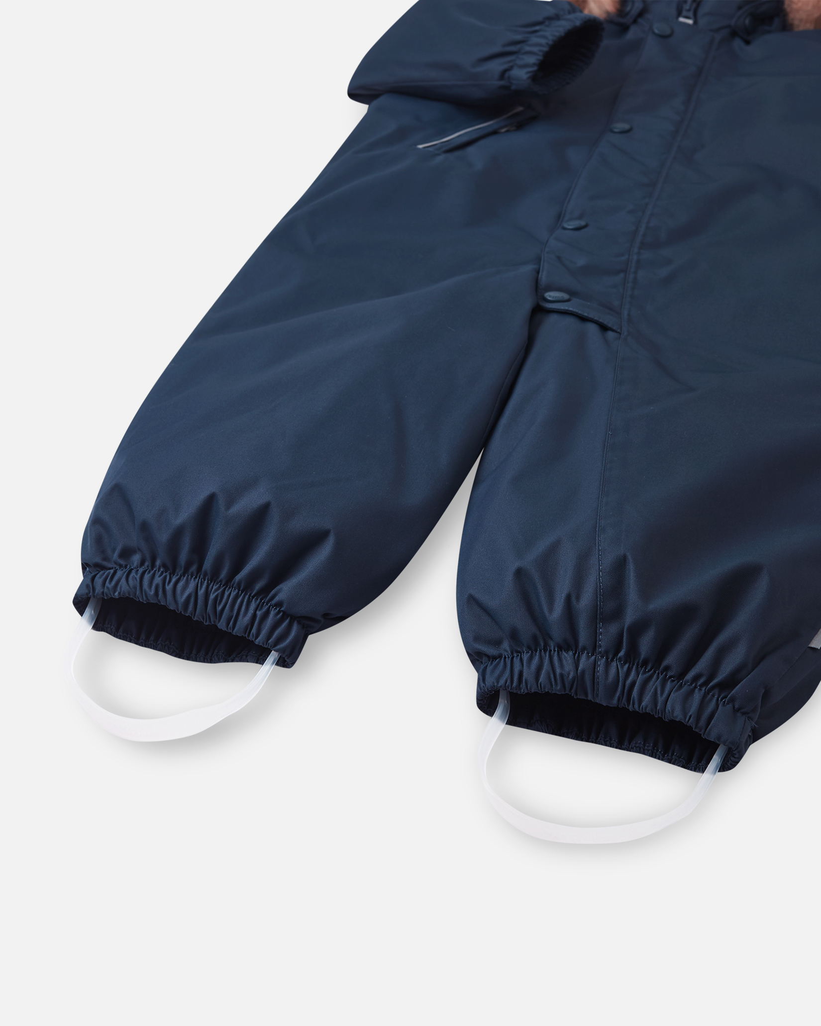 Непромокаемый зимний комбинезон изготовлен из дышащего и ветронепроницаемого, а также водо- и грязеотталкивающего материала. Все швы проклеены, водонепроницаемы, а еще комбинезон снабжен утепленной вставкой на задней части, благодаря которой ребенку будет тепло и сухо во время зимних приключений. Благодаря гладкой подкладке из полиэстера комбинезон очень легко надевать и удобно носить с теплой одеждой промежуточного слоя. Съемный регулируемый капюшон обеспечивает дополнительную безопасность во время игр на свежем воздухе. Кнопки легко отстегиваются, если капюшон случайно за что-нибудь зацепится. Прочные силиконовые штрипки не дают брючинам задираться и защищают ноги от холода и влаги. Этот зимний комбинезон отлично подойдет и для игр в снегу, и для прогулки по городу, а еще его можно сушить в сушильной машине!