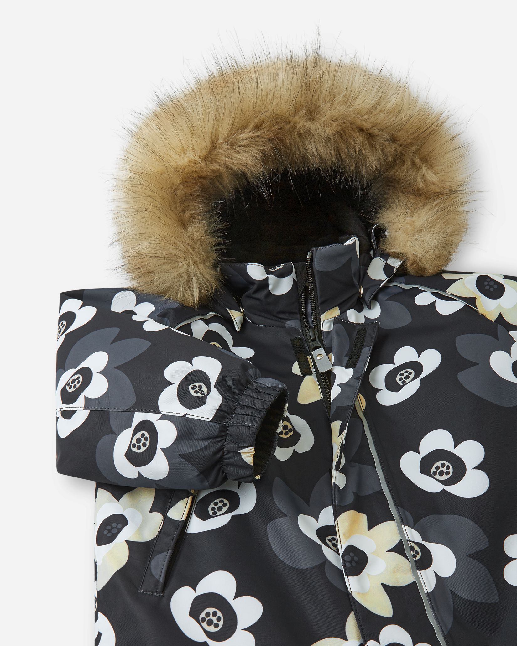 —Безопасный, съемный и регулируемый капюшон со съемной отделкой из искусственного меха