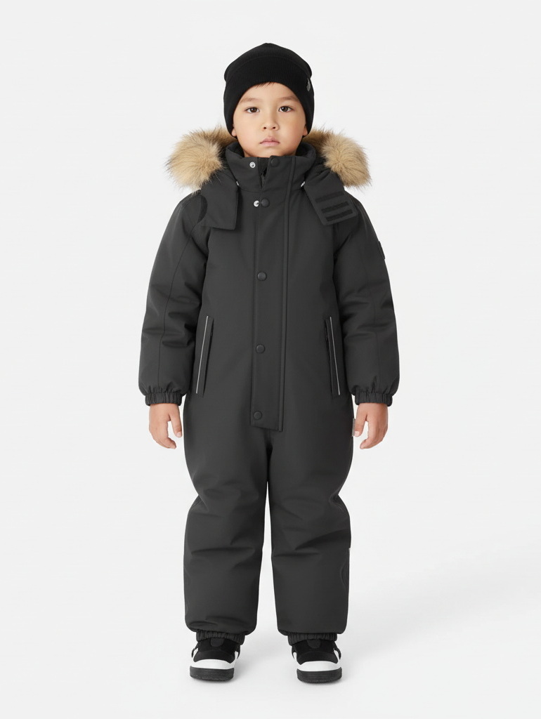 Что делает этот зимний комбинезон таким особенным? Во-первых, он сделан из очень прочного, водонепроницаемого, но дышащего материала.