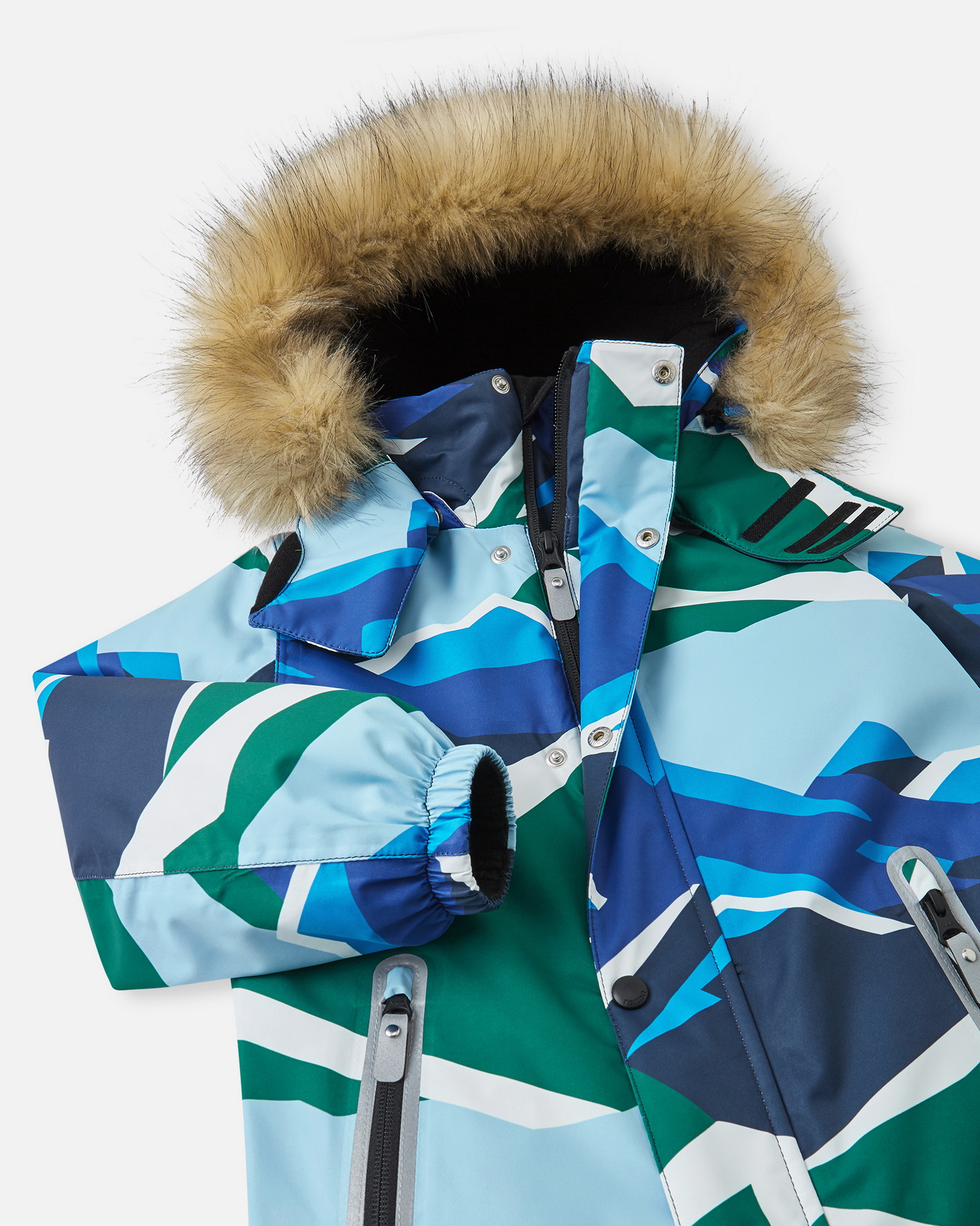 Зимний комбинезон Reima — тёплый, водонепроницаемый и износостойкий. Верх из грязеотталкивающей эластичной ткани не сковывает движения, герметичные швы защищают от влаги и снега. Плотный утеплитель сохраняет тепло. Модель оснащена съёмным капюшоном с искусственным мехом, регулируемой талией, карманами на молнии, эластичными манжетами и съёмными штрипками. Подходит для активных игр и повседневной носки.