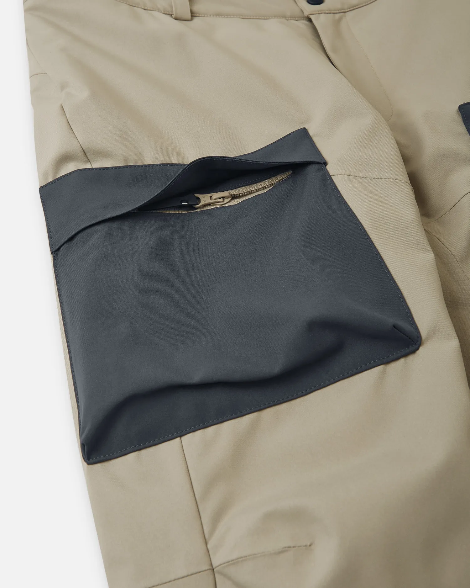 Ткань имеет водо- и грязеотталкивающую пропитку, требующую минимального ухода. Брюки оснащены удобными карманами на молнии.