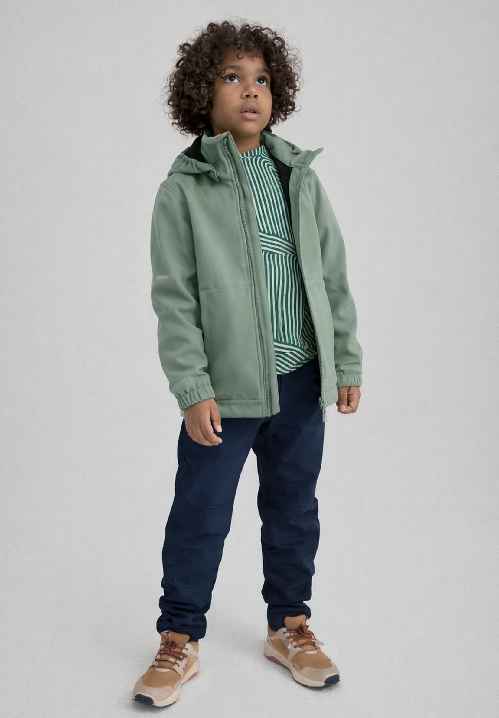Удобная куртка прямого кроя для подростков, изготовленая из материала Softshell. Ветронепроницаемый, но дышащий материал с теплым флисом на обратной стороне, изготовленный с использованием переработанных волокон полиэстера и покрытый водо- и грязеотталкивающей пропиткой без содержания фторуглерода Teflon EcoEliteTM. Модель имеет безопасный съемный капюшон, два вместительных кармана на молнии и светоотражающие детали, которые делают прогулки более безопасными.