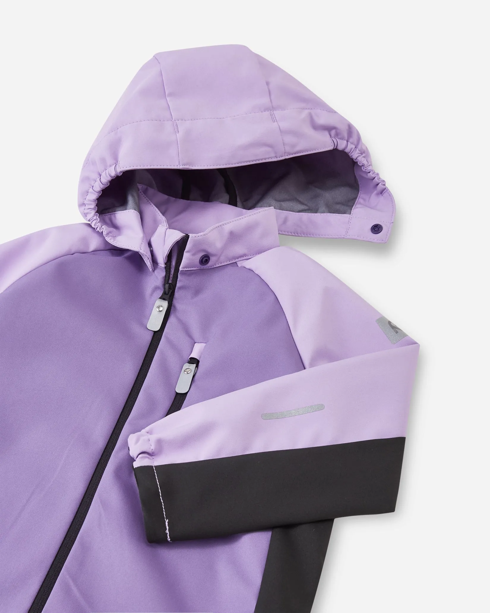 Куртка обеспечивает защиту и комфорт во время прогулок на улице в условиях нестабильной погоды. Лёгкий трёхслойный материал надёжно защищает от ветра и лёгкого дождя, оставаясь при этом дышащим и комфортным для носки в течение дня. Гладкая и мягкая изнаночная сторона делает куртку удобной даже в тёплую погоду. Продуманный крой с боковыми вставками на рукавах и корпусе обеспечивает свободу движений, а съёмный безопасный капюшон и полноразмерная молния упрощают использование. Эластичные манжеты и подол обеспечивают аккуратную посадку, а светоотражающие детали повышают видимость ребёнка при слабом освещении.