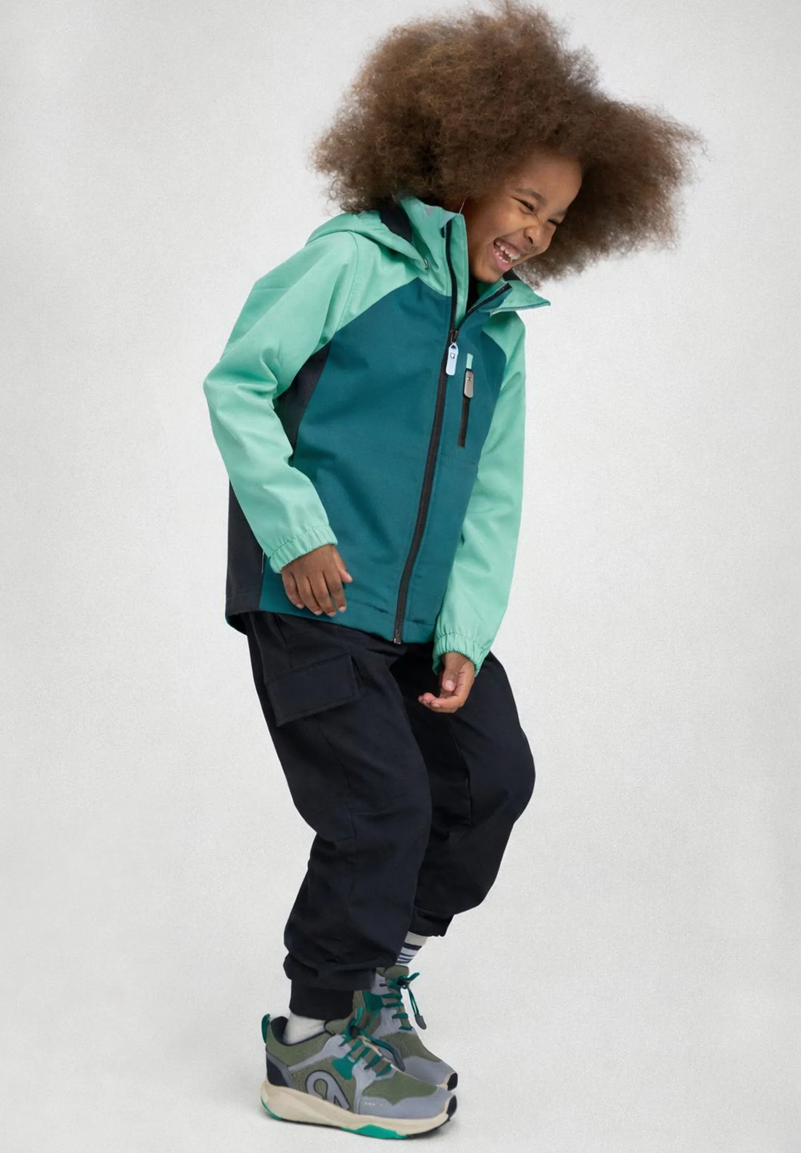 Куртка обеспечивает защиту и комфорт во время прогулок на улице в условиях нестабильной погоды. Лёгкий трёхслойный материал надёжно защищает от ветра и лёгкого дождя, оставаясь при этом дышащим и комфортным для носки в течение дня. Гладкая и мягкая изнаночная сторона делает куртку удобной даже в тёплую погоду. Продуманный крой с боковыми вставками на рукавах и корпусе обеспечивает свободу движений, а съёмный безопасный капюшон и полноразмерная молния упрощают использование. Эластичные манжеты и подол обеспечивают аккуратную посадку, а светоотражающие детали повышают видимость ребёнка при слабом освещении.