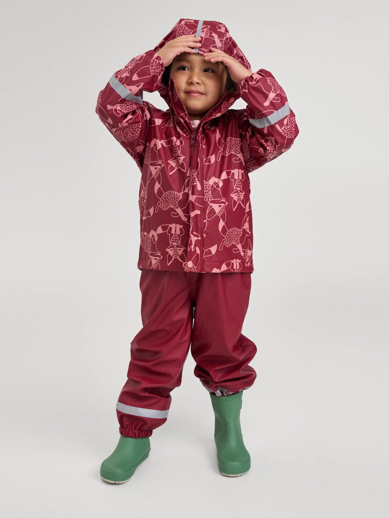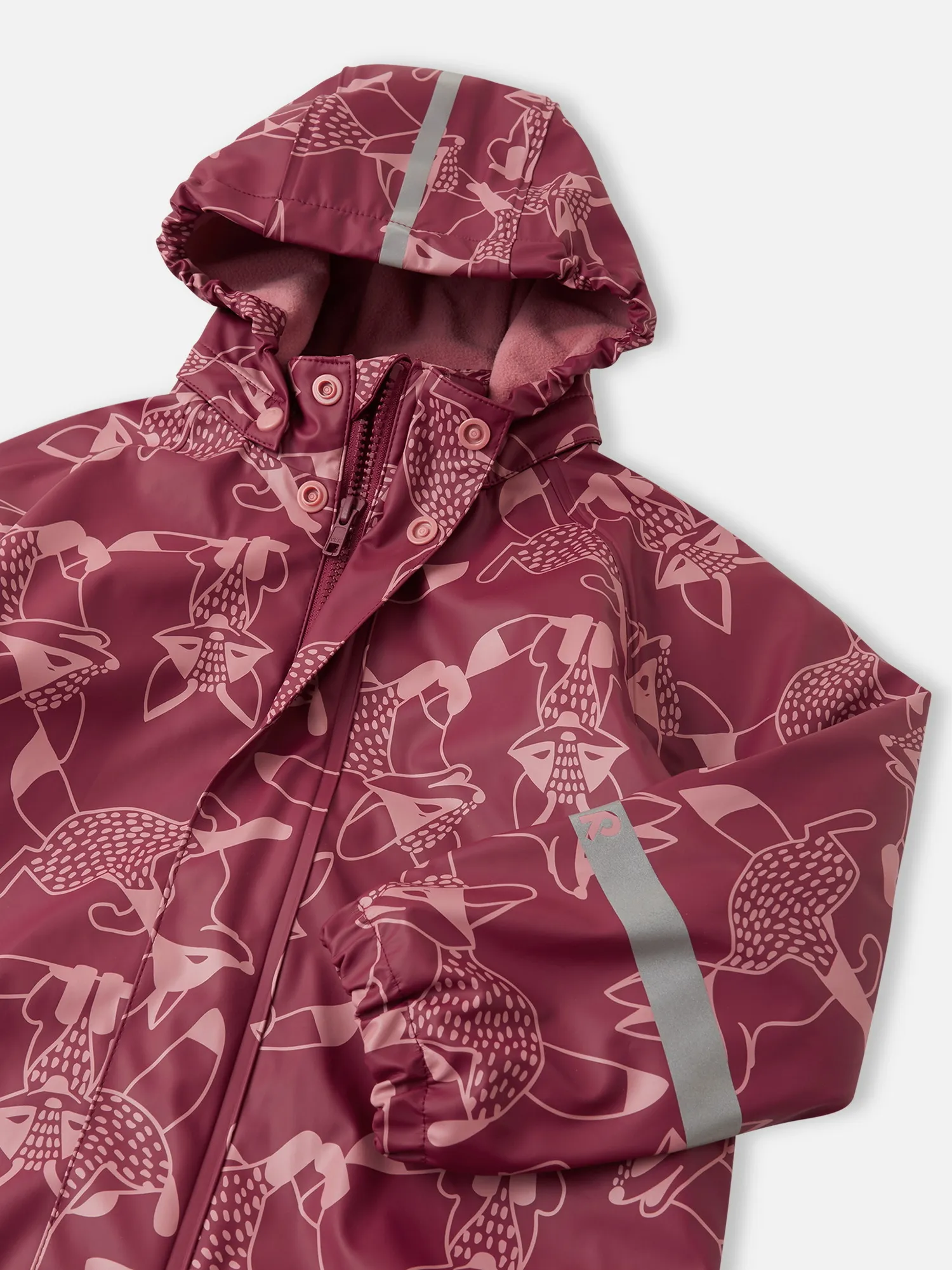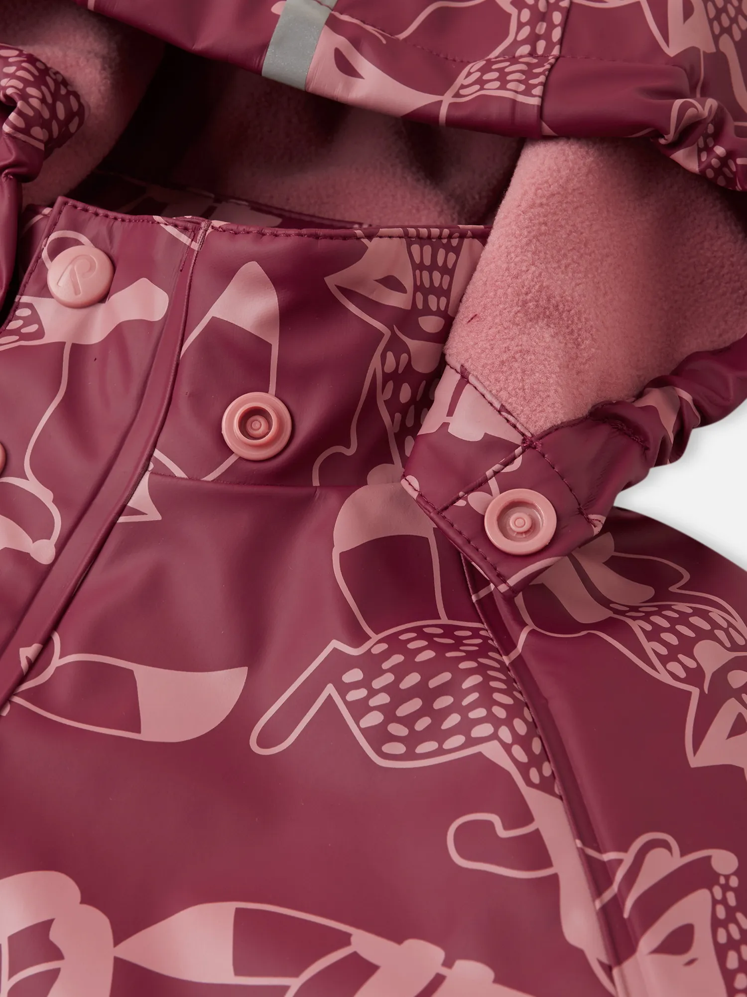 Куртка изготовлена из эластичного материала, не деревенеющего на морозе. Добавив дополнительные промежуточные слои для утепления, вы получите надежный дождевик на круглый год. Все швы запаяны, водонепроницаемы, так что внутрь не просочится ни одной дождинки. Съемный капюшон обеспечивает дополнительную безопасность во время активных прогулок – кнопки капюшона легко отстегнутся, если он случайно за что-нибудь зацепится. Эластичные манжеты и светоотражающие детали на рукавах и капюшоне. Одежда для дождя Reima производится из приятного, мягкого материала, не содержащего ПВХ.