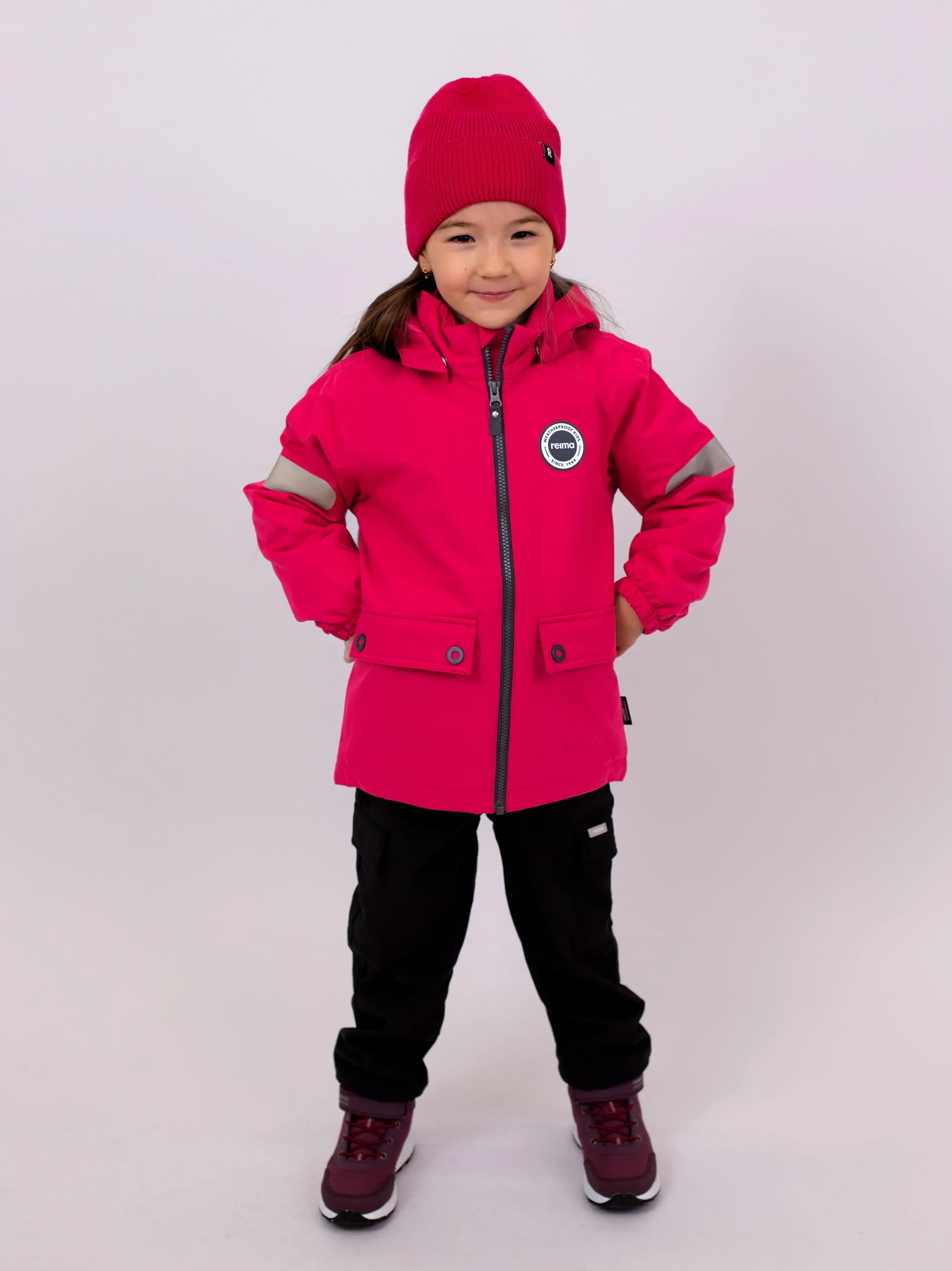 Безопасный съемный капюшон с резинкой по краю и эластичные манжеты для защиты от ветра и холода, а также большие карманы с клапанами для хранения найденных сокровищ. Теперь маленького искателя приключений не остановит переменчивая погода!