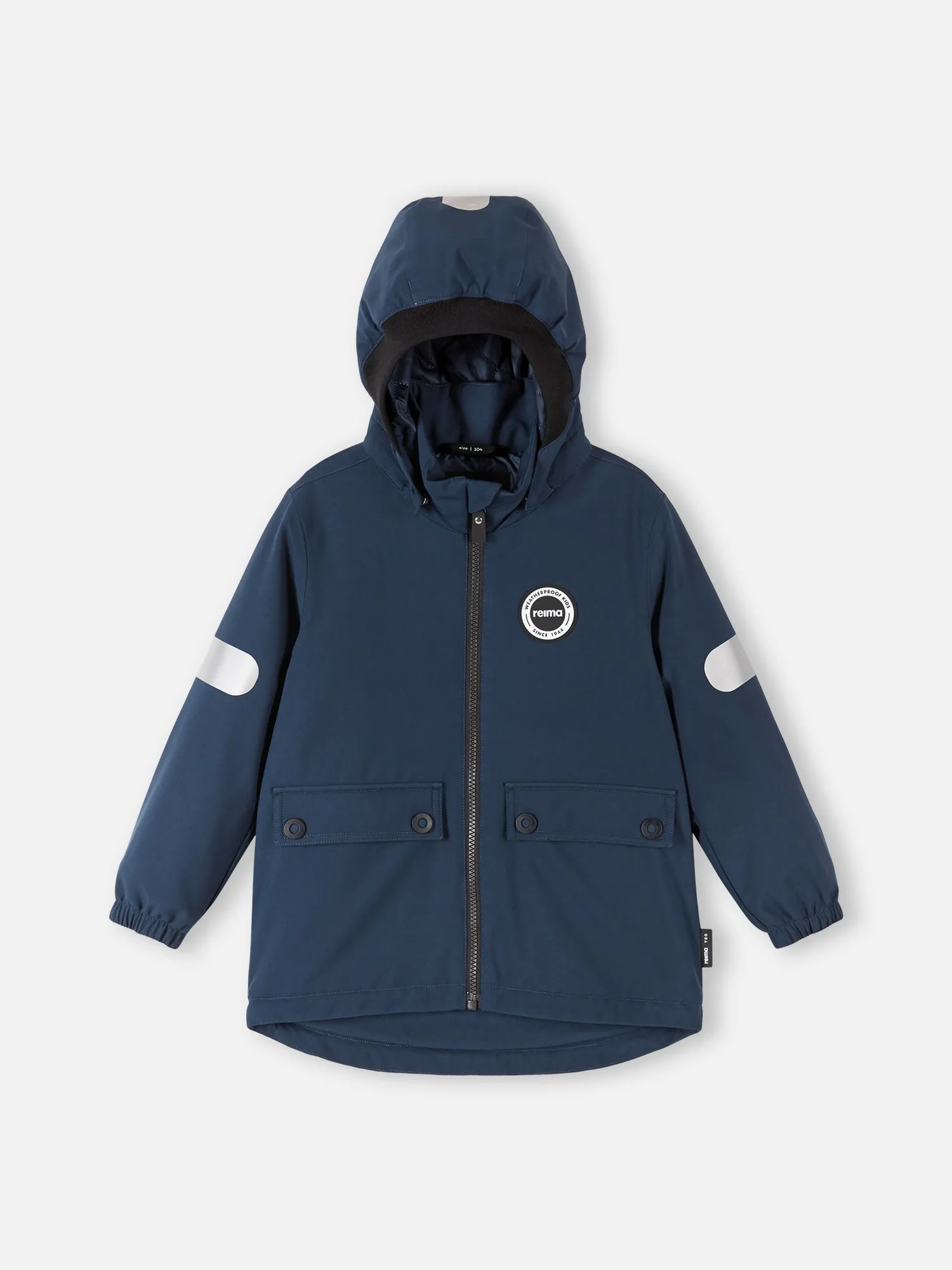 Безопасный съемный капюшон с резинкой по краю и эластичные манжеты для защиты от ветра и холода, а также большие карманы с клапанами для хранения найденных сокровищ. Теперь маленького искателя приключений не остановит переменчивая погода!