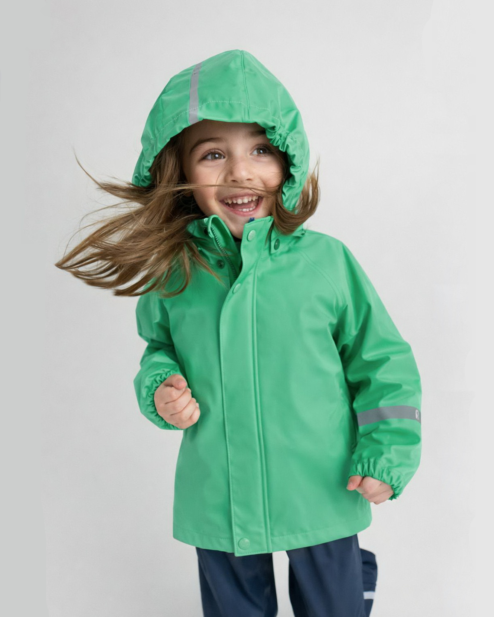Детская популярная куртка-дождевик Lampi стильно смотрится и гарантирует, что плечи останутся сухими. Эластичный материал не деревенеет на морозе, поэтому этот дождевик можно носить круглый год – просто добавьте в холодную погоду теплый промежуточный слой. Съемный капюшон защитит даже от ливня, при этом он безопасен во время прогулок в дождливый день. В туманный день или в темное время суток светоотражатели будут просто незаменимы. Материал не содержит ПВХ. Разве бывает что-то веселее, чем бегать под дождем – и при этом не мокнуть?