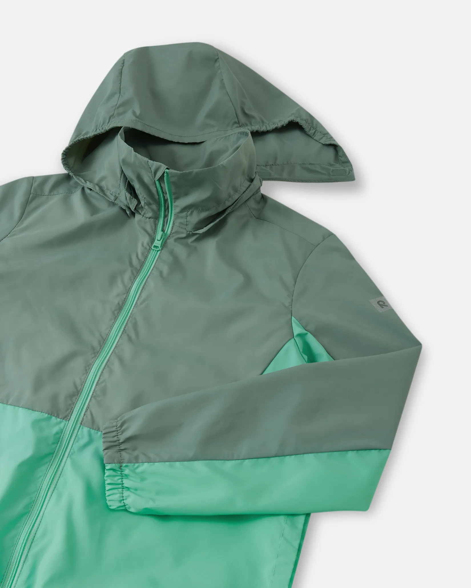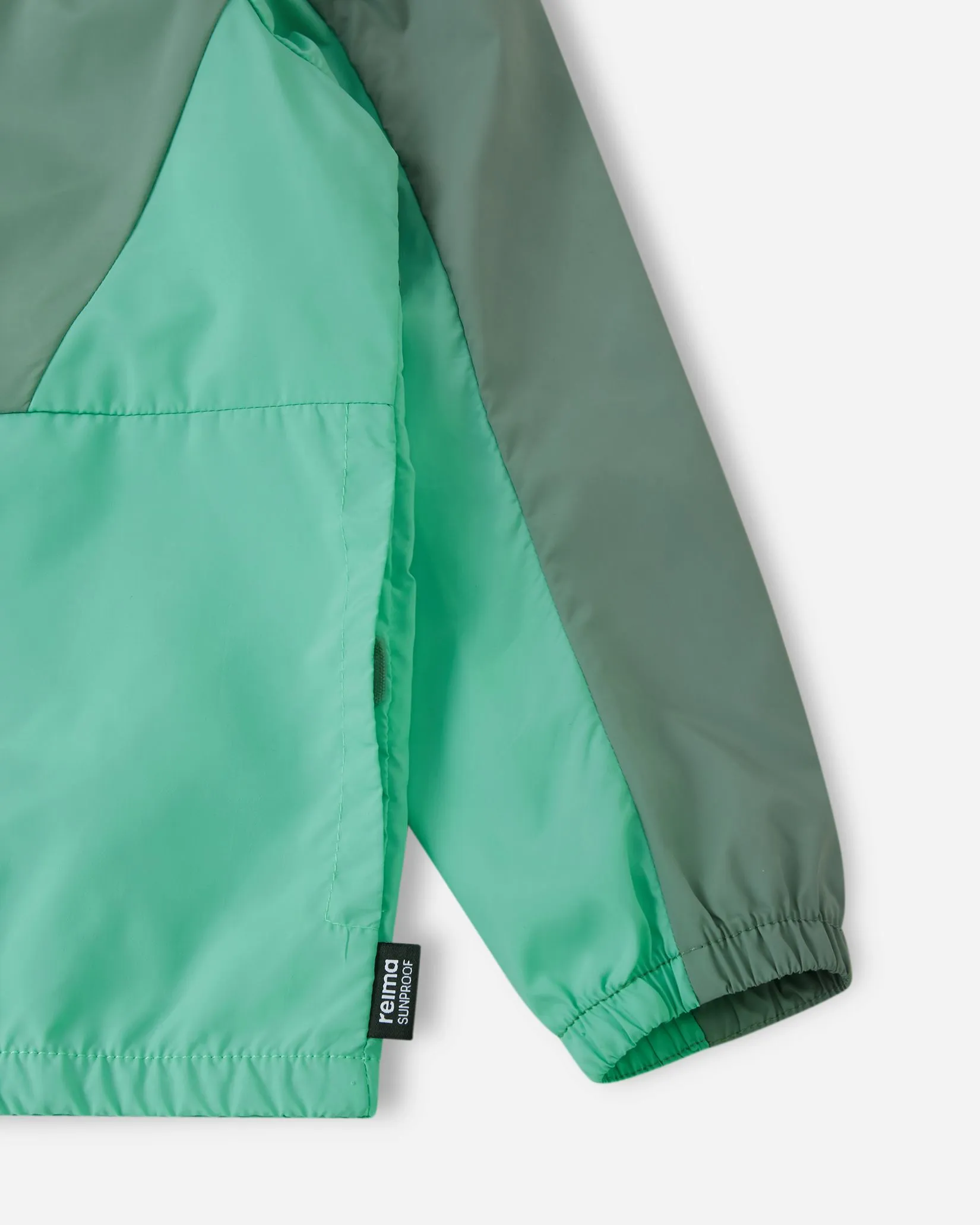 Лёгкая ветровка станет надёжным вариантом для активных прогулок на улице в переменчивую погоду. Ветрозащитный, водо- и грязеотталкивающий материал защищает от внешних воздействий и обеспечивает защиту от ультрафиолета UPF 50+. Вентиляция на спинке и в капюшоне с сетчатой подкладкой помогает поддерживать комфорт во время активных игр. Съёмный капюшон повышает безопасность, а эластичные манжеты и подол обеспечивают аккуратную посадку. Полноразмерная молния с защитой подбородка облегчает надевание, а боковые карманы подходят для хранения мелочей. Куртка легко складывается в собственный карман, что удобно для прогулок и путешествий.