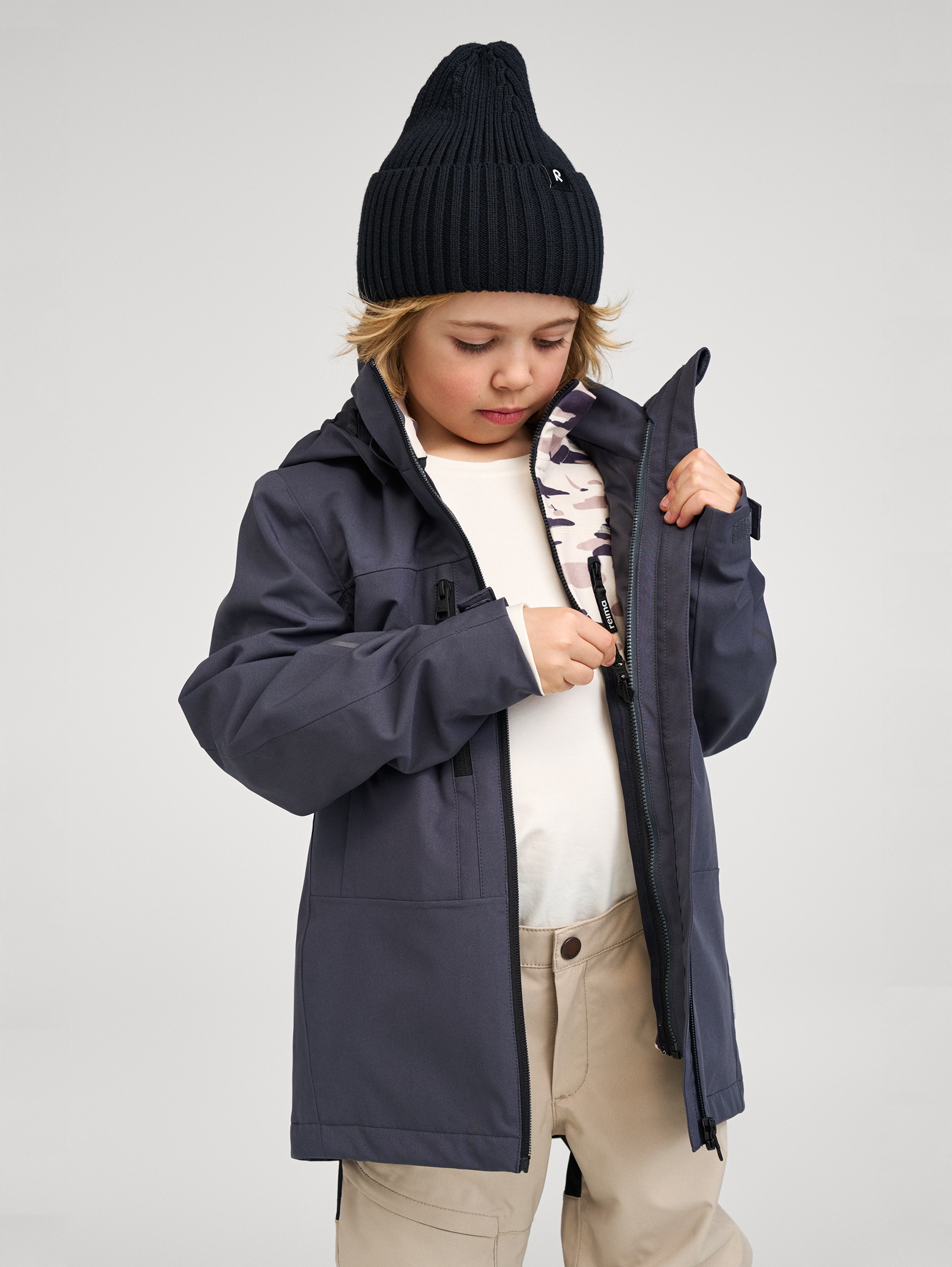 Куртка выполнена с использованием переработанных волокон и сертифицирована по стандарту Bluesign®, что подтверждает ответственное производство и безопасность для ребёнка и окружающей среды. Простой фасон не сковывает движения, а продуманные детали повышают удобство в повседневной носке.