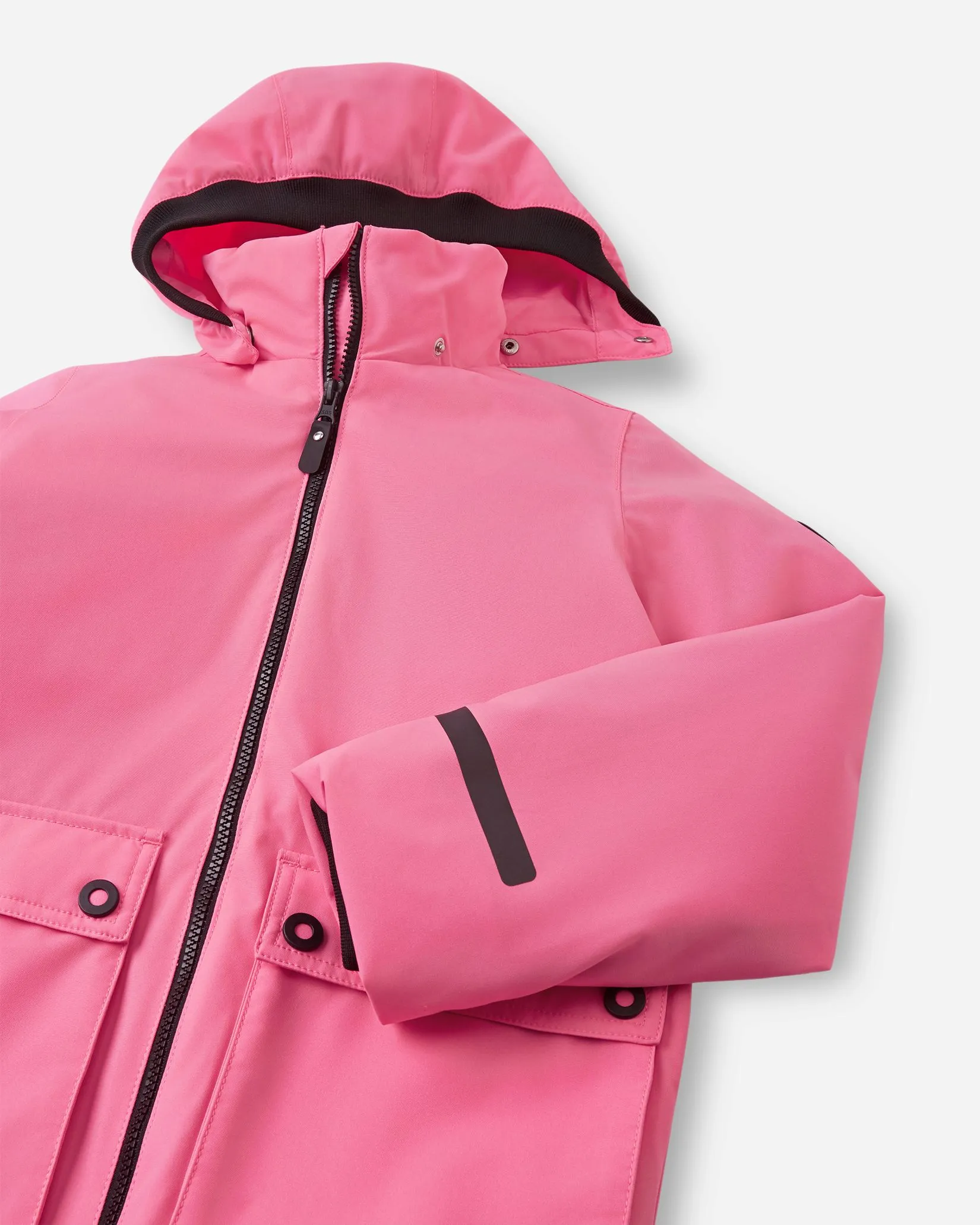 Все швы куртки проклеены и водонепроницаемы. Материал имеет грязе- и водоотталкивающие свойства. Куртка «3-в-1» снабжена съемной слегка утепленной внутренней курткой. Съемный капюшон безопасен: он крепится кнопками и легко отстегивается, зацепившись за что-либо. Регулируемый подол защищает от ветра. Два кармана с клапанами и крупные светоотражающие детали завершают ретро-образ!