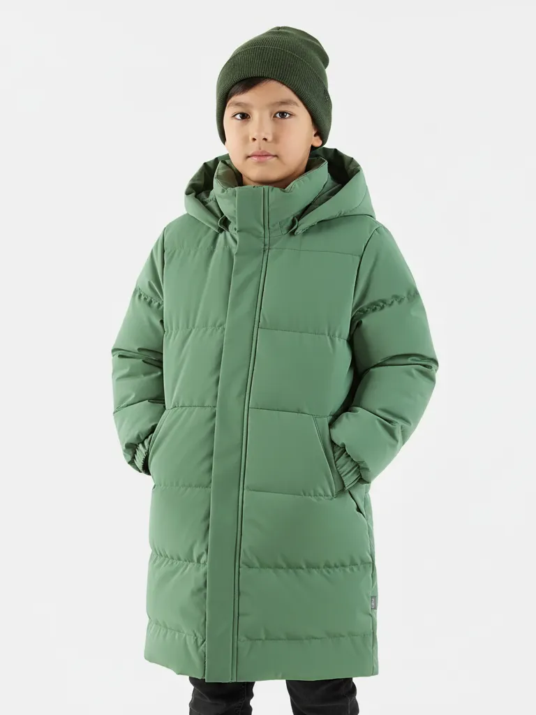 Это длинное пуховое пальто создано для активных детей, которые не боятся морозов. Прочный водо- и ветронепроницаемый материал надёжно защищает от снега и ветра, сохраняя тепло и комфорт даже в холодную погоду. Наполнитель из пуха и пера равномерно распределяет тепло, создавая уют и обеспечивая лёгкость при носке. Двухходовая молния делает движения свободными, а функциональные детали — съёмный безопасный капюшон, эластичные манжеты и удобные карманы на молнии — дарят дополнительную защиту и удобство. Специальная грязе- и водоотталкивающая обработка помогает пальто оставаться чистым дольше.