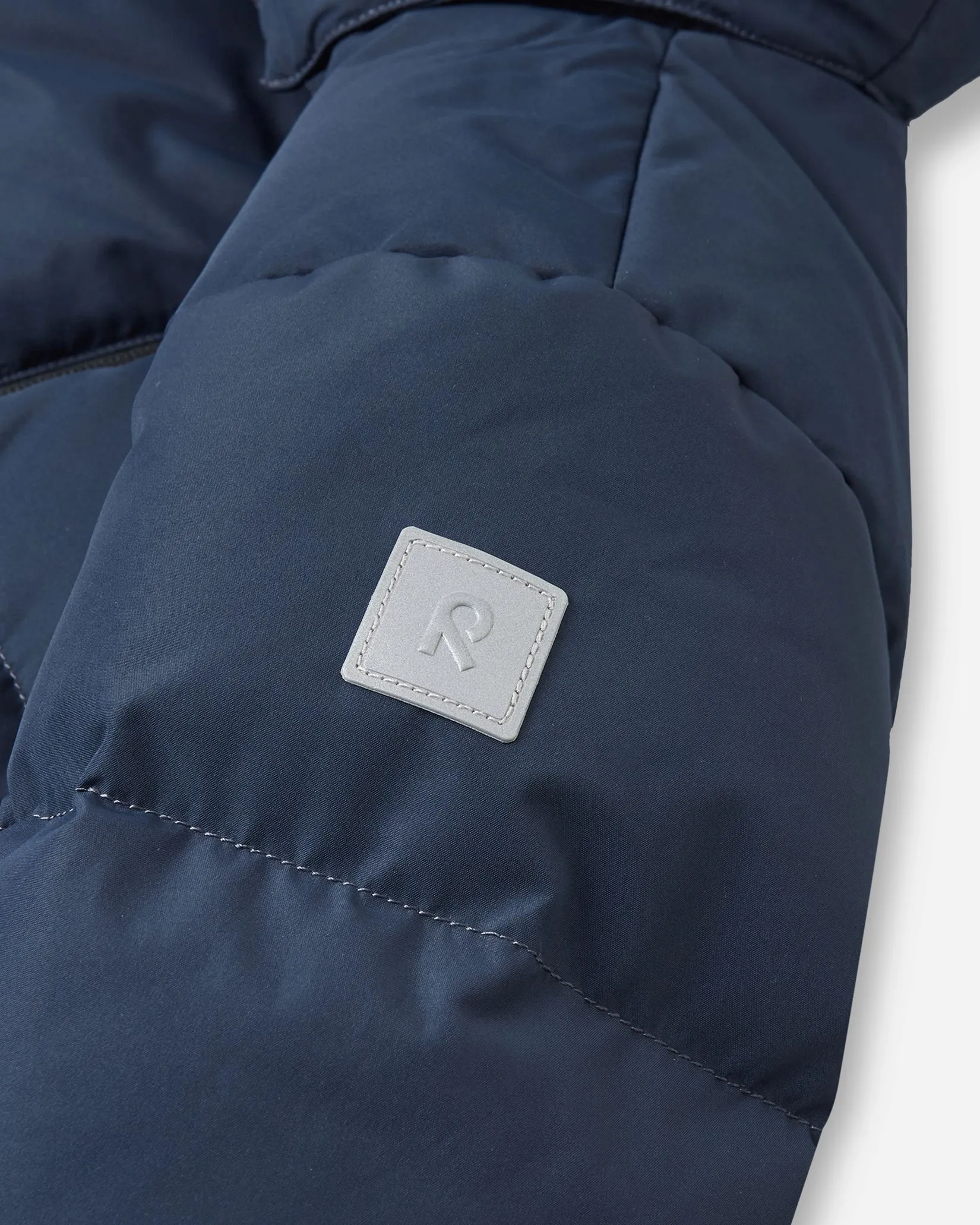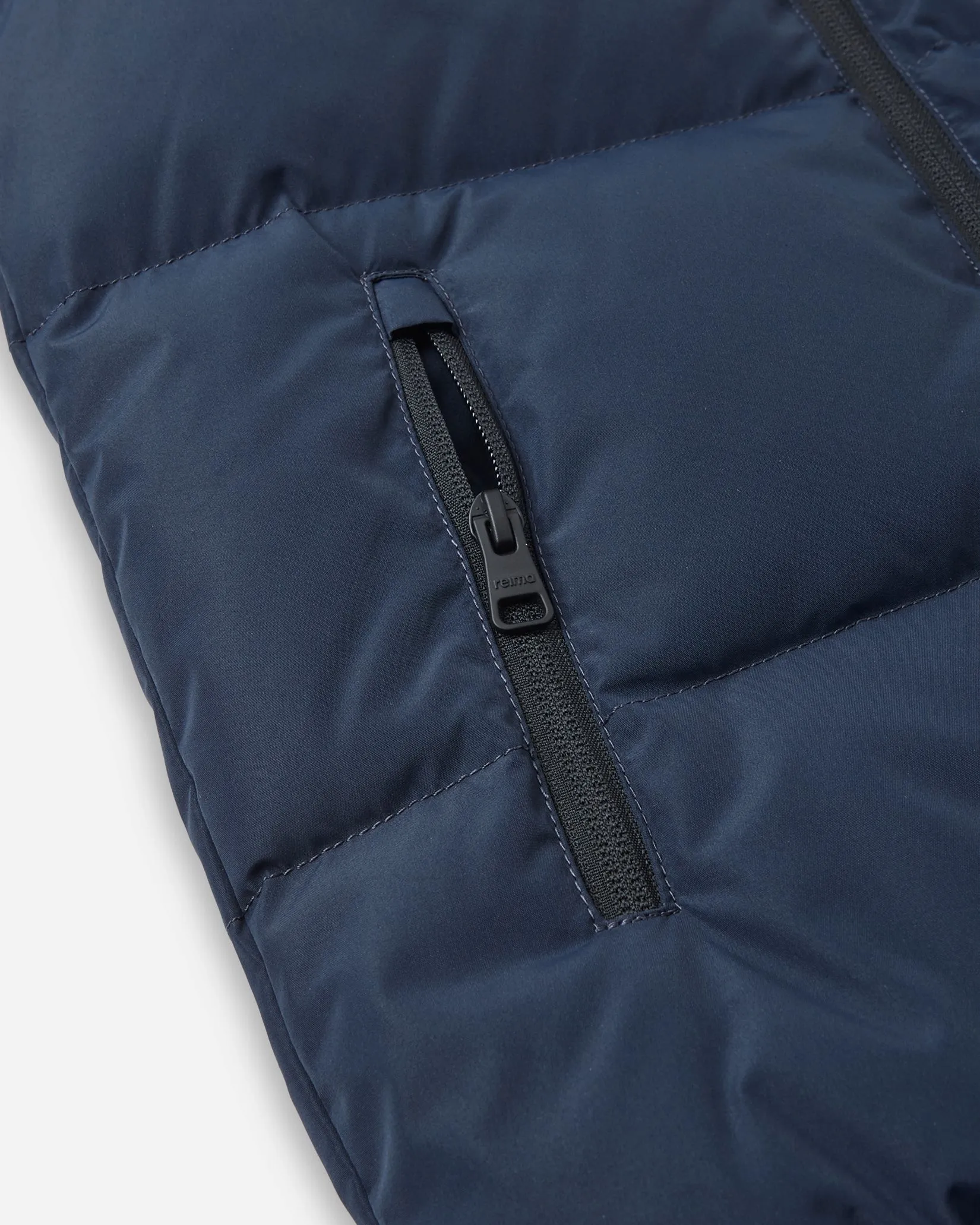 Куртка имеет утеплитель пух/перо (60%/40%), Fill Power 550, сертифицированный Control Union CU872203 в соответствии со стандартом Responsible Down Standard. Покрыта водо- и грязеотталкивающей пропиткой без содержания фторуглерода BIONIC-FINISH®ECO. Подкладка из гладкого полиэстера для легкого надевания. Пуховик имеет безопасный съемный капюшон, два кармана на молнии и резинку на подоле и манжетах. Прямой крой и стильный лаконичный дизайн делают эту модель универсальной, что прекрасно дополнит зимний гардероб ребенка.