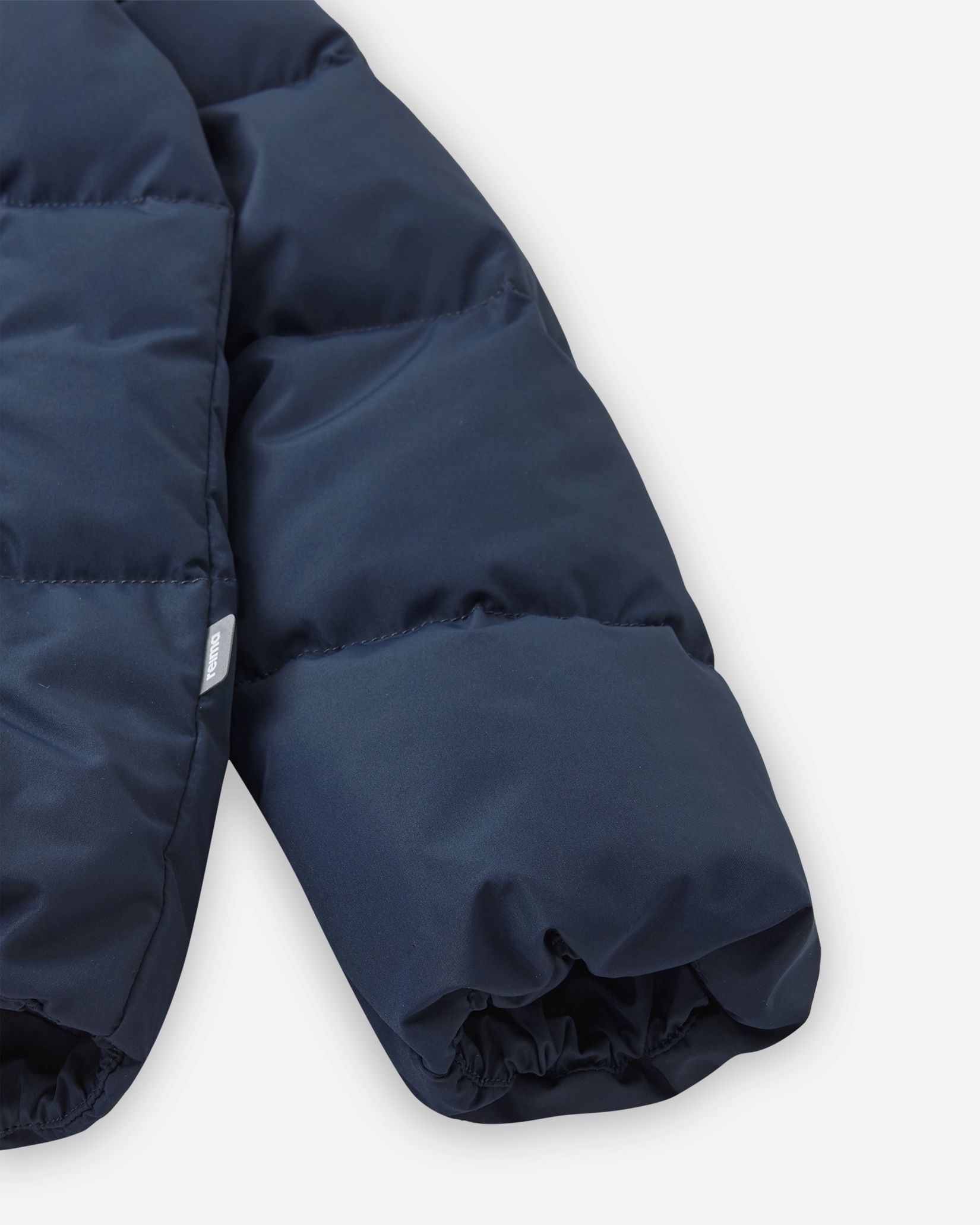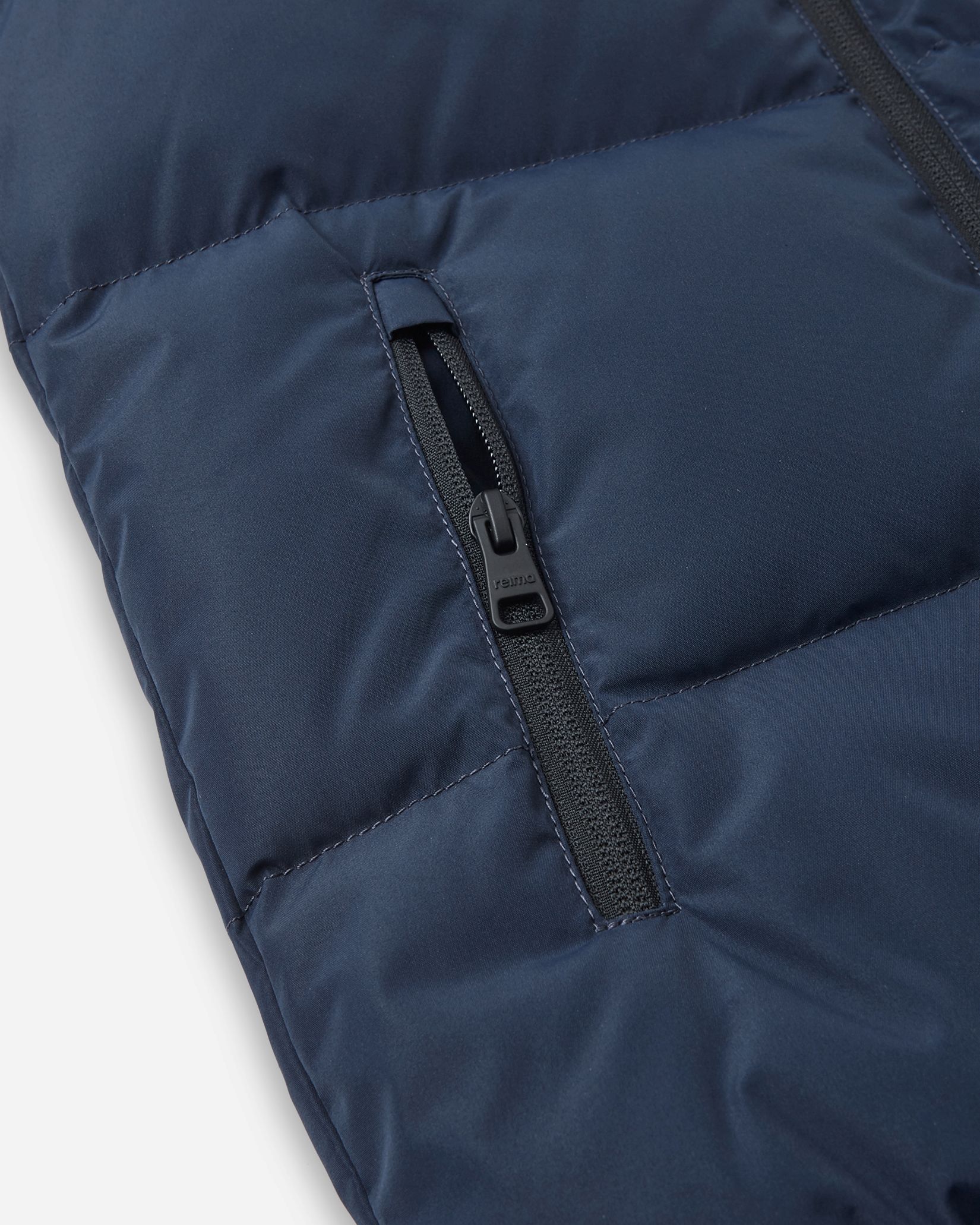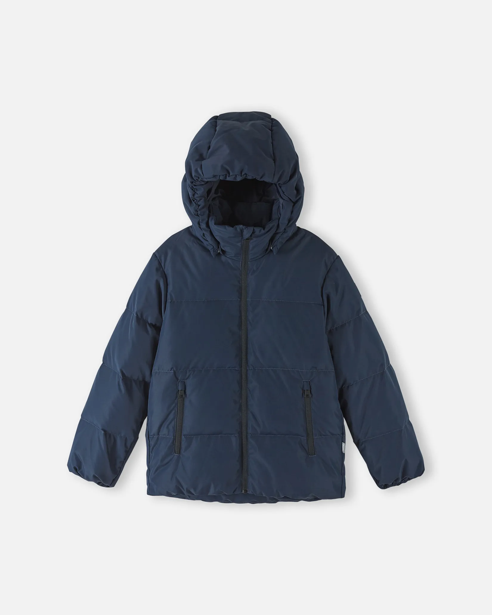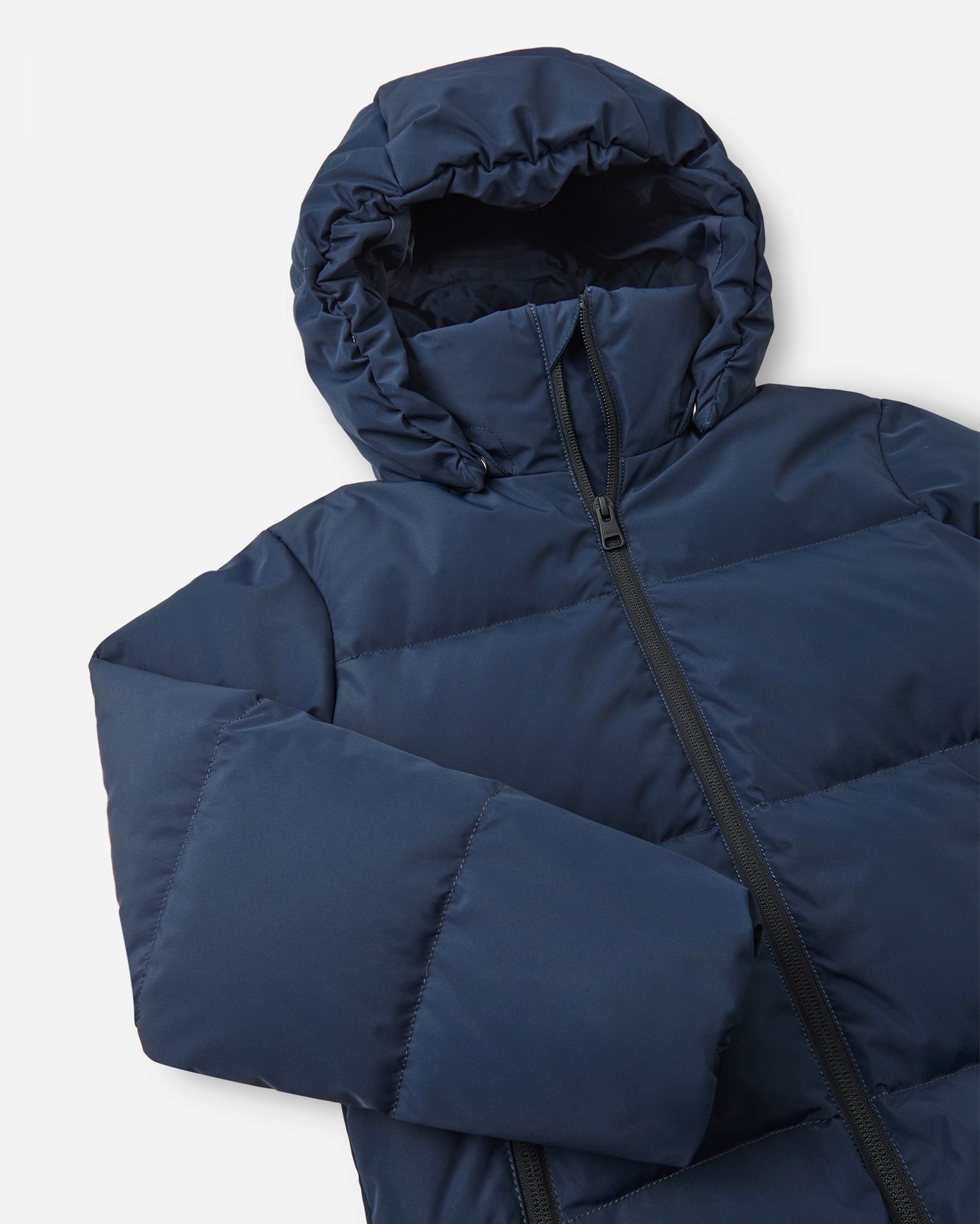 Куртка имеет утеплитель пух/перо (60%/40%), Fill Power 550, сертифицированный Control Union CU872203 в соответствии со стандартом Responsible Down Standard. Покрыта водо- и грязеотталкивающей пропиткой без содержания фторуглерода BIONIC-FINISH®ECO. Подкладка из гладкого полиэстера для легкого надевания. Пуховик имеет безопасный съемный капюшон, два кармана на молнии и резинку на подоле и манжетах. Прямой крой и стильный лаконичный дизайн делают эту модель универсальной, что прекрасно дополнит зимний гардероб ребенка.