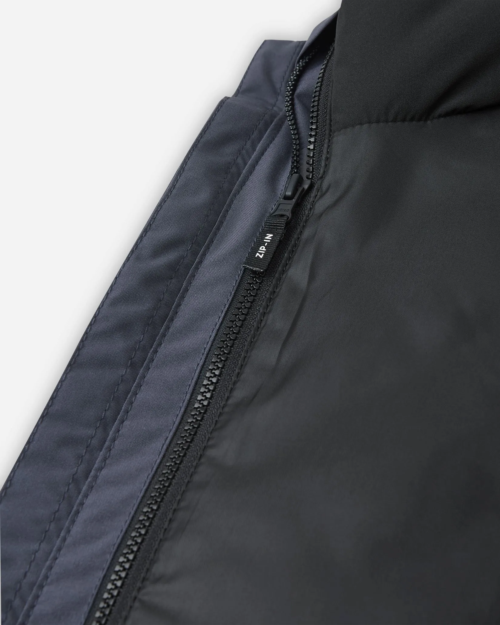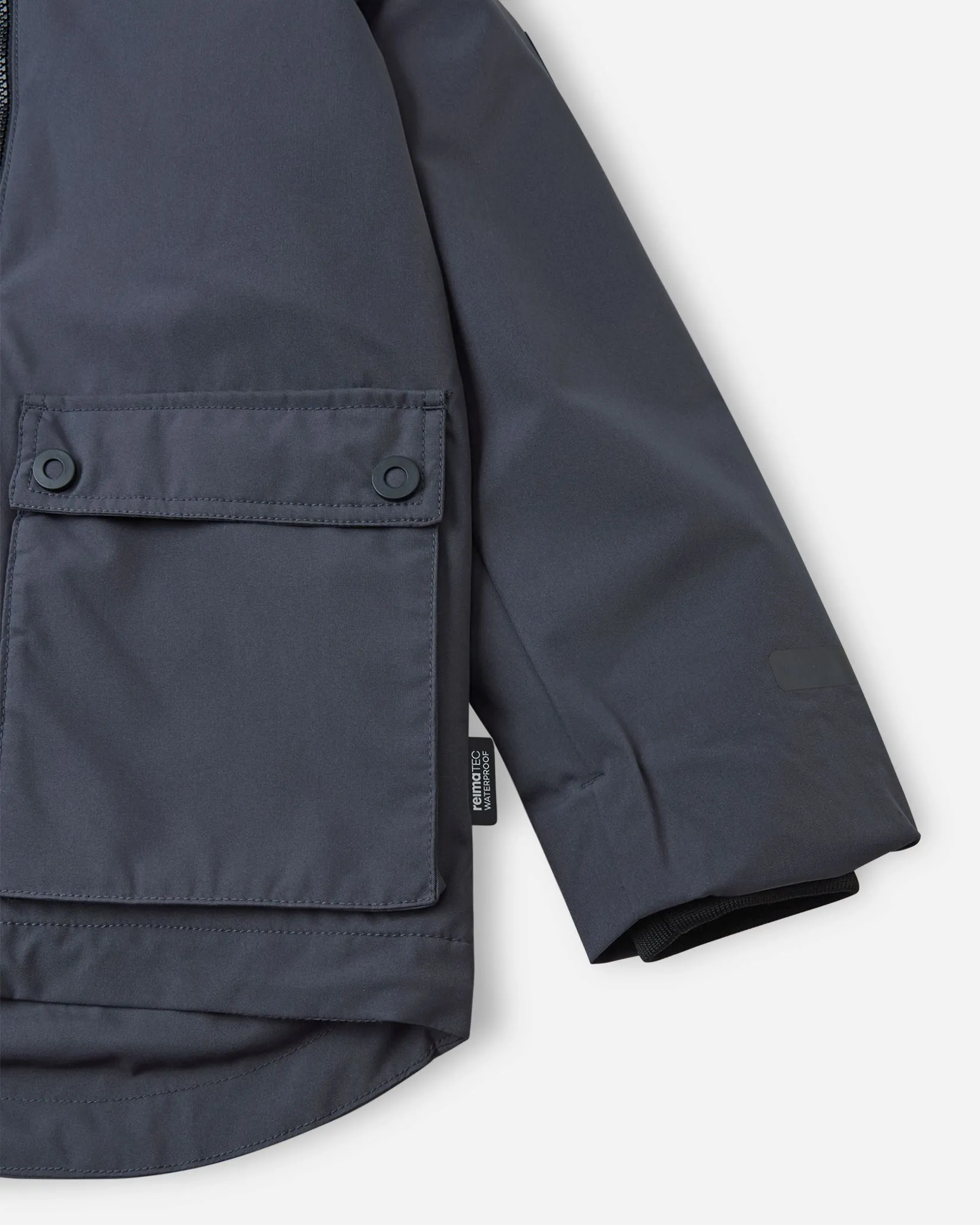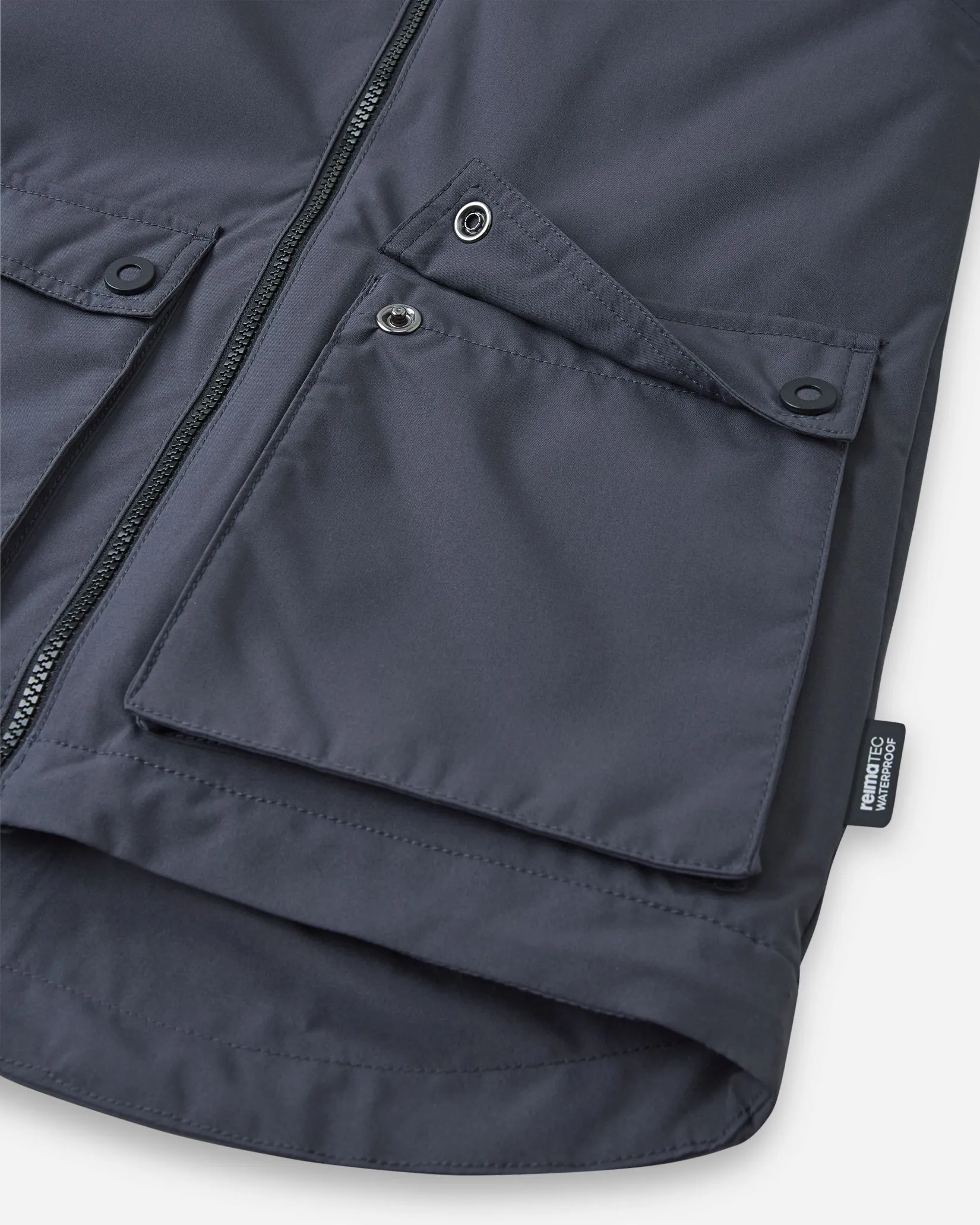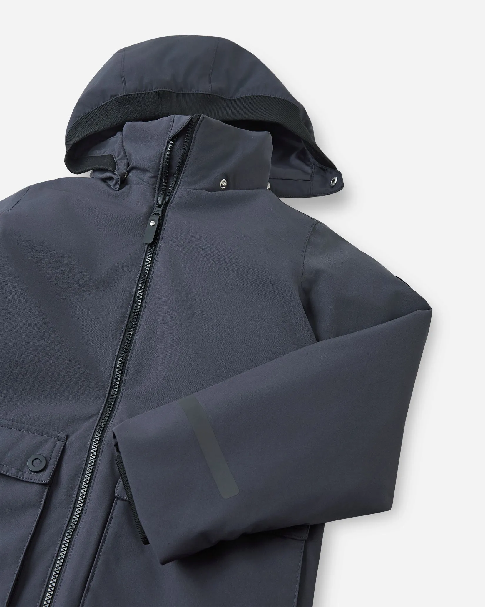 Все швы куртки проклеены и водонепроницаемы. Материал имеет грязе- и водоотталкивающие свойства. Куртка «3-в-1» снабжена съемной слегка утепленной внутренней курткой. Съемный капюшон безопасен: он крепится кнопками и легко отстегивается, зацепившись за что-либо. Регулируемый подол защищает от ветра. Два кармана с клапанами и крупные светоотражающие детали завершают ретро-образ!