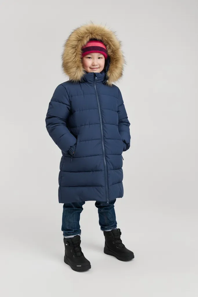 Эта тёплая длинная куртка от Reima создана специально для активных детей, которые любят зимние прогулки и игры на свежем воздухе. Прочный водо- и ветронепроницаемый материал защищает от ветра и снега, а дышащая структура ткани поддерживает комфорт даже при высокой активности. Специальная пропитка без PFAS отталкивает воду и грязь, сохраняя куртку чистой дольше. Двухслойная утеплённая конструкция обеспечивает надёжное тепло, не утяжеляя изделие. Безопасный съёмный капюшон с мягкой искусственной опушкой защищает от ветра и добавляет стильный акцент. Эластичные манжеты и двунаправленная молния дарят удобство и свободу движений, а вместительные карманы на молнии сохранят всё необходимое под рукой. Luvia сочетает в себе функциональность, стиль и экологичный подход, соответствуя строгим стандартам качества и безопасности bluesign®.