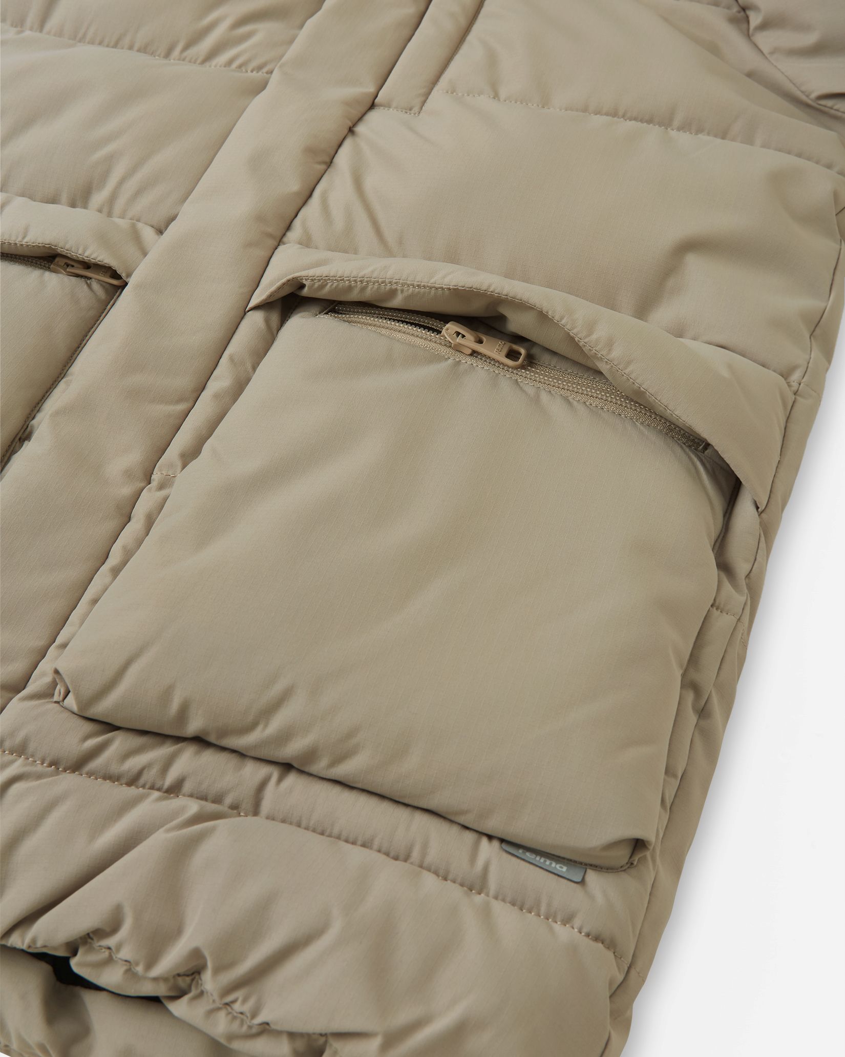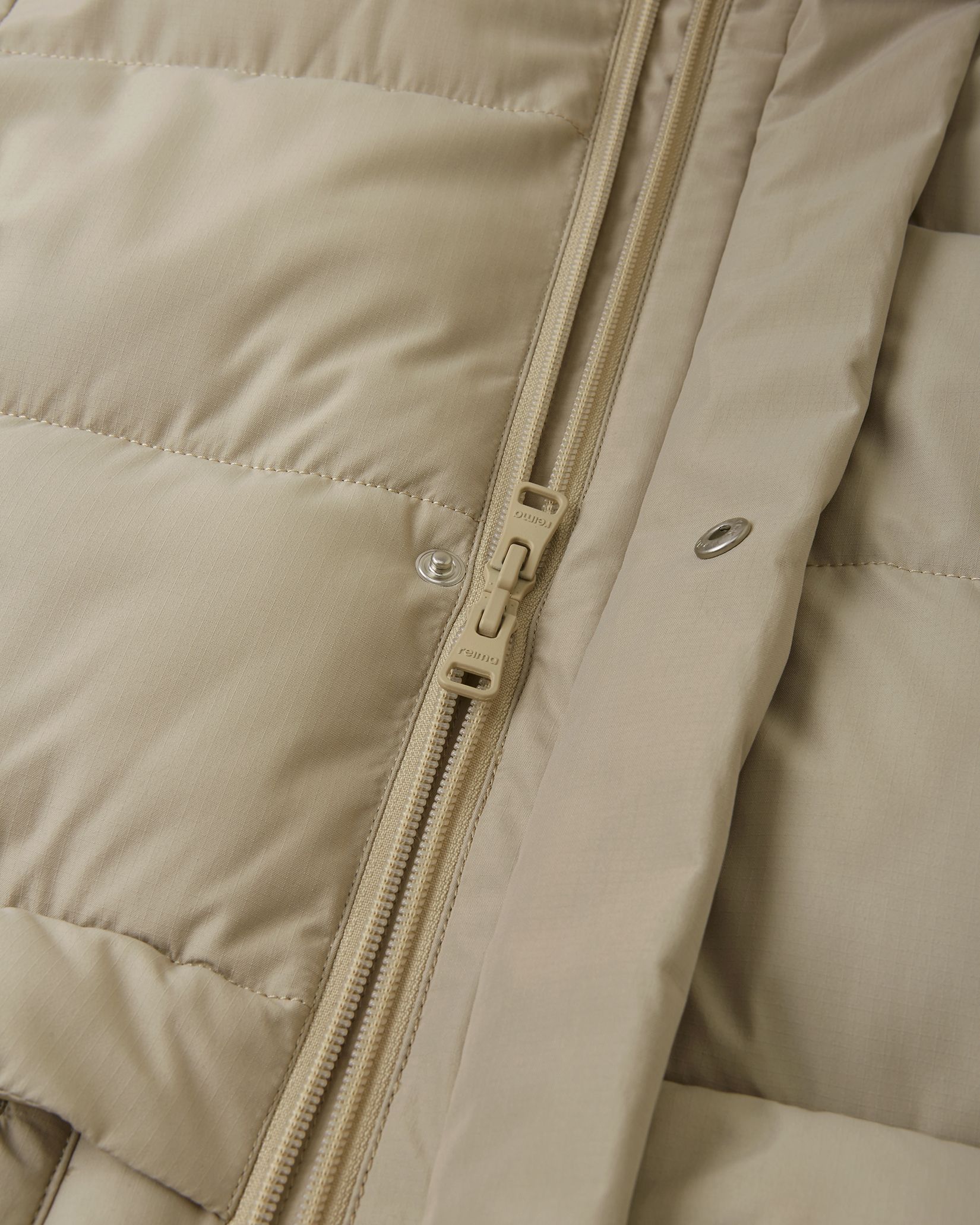 Гладкая подкладка позволяет быстро надевать куртку, а удобные функциональные детали, такие как съёмный капюшон, эластичные манжеты и светоотражающие элементы, обеспечивают комфорт и безопасность. Экологичный дизайн: материал одобрен стандартом bluesign®, отделка без фторуглеродов, используется переработанное волокно.