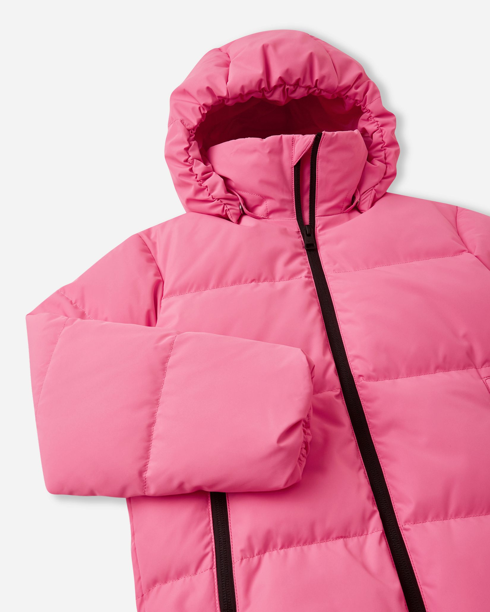 Куртка имеет утеплитель пух/перо (60%/40%), Fill Power 550, сертифицированный Control Union CU872203 в соответствии со стандартом Responsible Down Standard. Покрыта водо- и грязеотталкивающей пропиткой без содержания фторуглерода BIONIC-FINISH®ECO. Подкладка из гладкого полиэстера для легкого надевания. Пуховик имеет безопасный съемный капюшон, два кармана на молнии и резинку на подоле и манжетах. Прямой крой и стильный лаконичный дизайн делают эту модель универсальной, что прекрасно дополнит зимний гардероб ребенка.