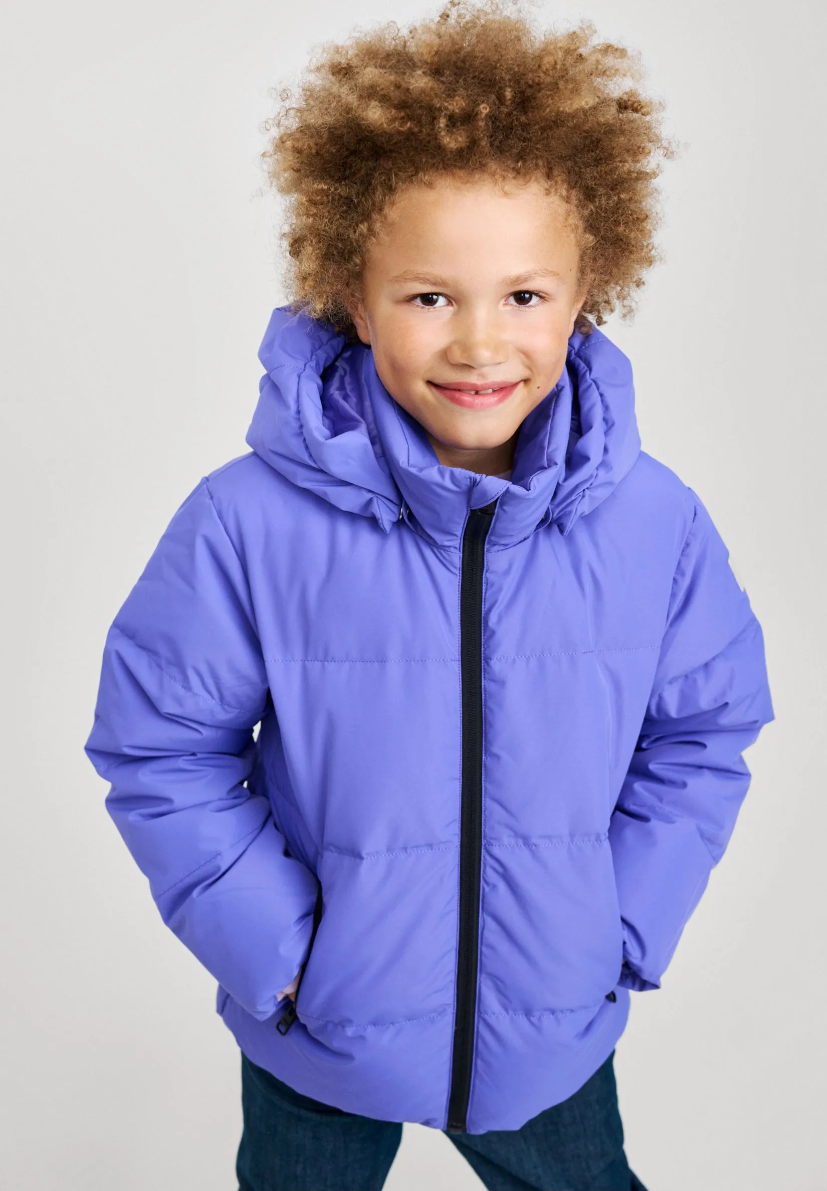 Куртка имеет утеплитель пух/перо (60%/40%), Fill Power 550, сертифицированный Control Union CU872203 в соответствии со стандартом Responsible Down Standard. Покрыта водо- и грязеотталкивающей пропиткой без содержания фторуглерода BIONIC-FINISH®ECO. Подкладка из гладкого полиэстера для легкого надевания. Пуховик имеет безопасный съемный капюшон, два кармана на молнии и резинку на подоле и манжетах. Прямой крой и стильный лаконичный дизайн делают эту модель универсальной, что прекрасно дополнит зимний гардероб ребенка.