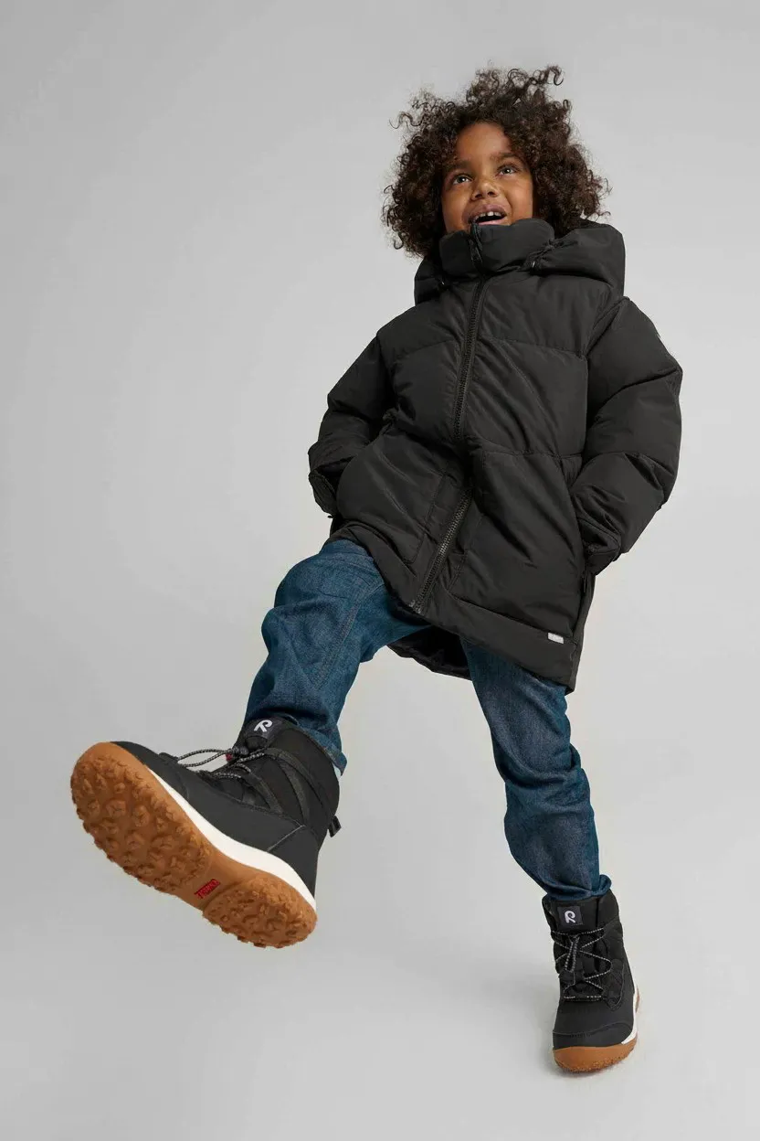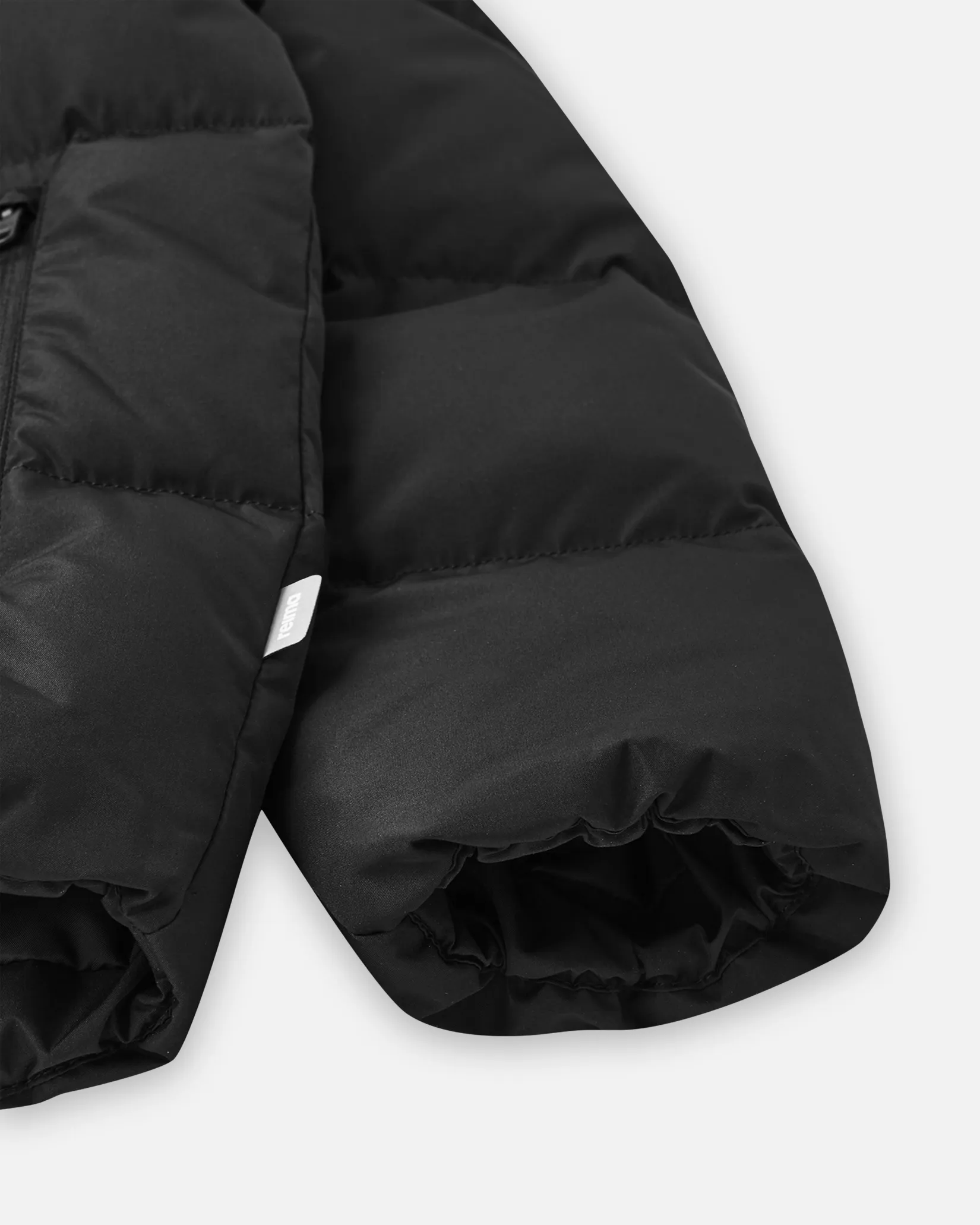 Куртка имеет утеплитель пух/перо (60%/40%), Fill Power 550, сертифицированный Control Union CU872203 в соответствии со стандартом Responsible Down Standard. Покрыта водо- и грязеотталкивающей пропиткой без содержания фторуглерода BIONIC-FINISH®ECO. Подкладка из гладкого полиэстера для легкого надевания. Пуховик имеет безопасный съемный капюшон, два кармана на молнии и резинку на подоле и манжетах. Прямой крой и стильный лаконичный дизайн делают эту модель универсальной, что прекрасно дополнит зимний гардероб ребенка.