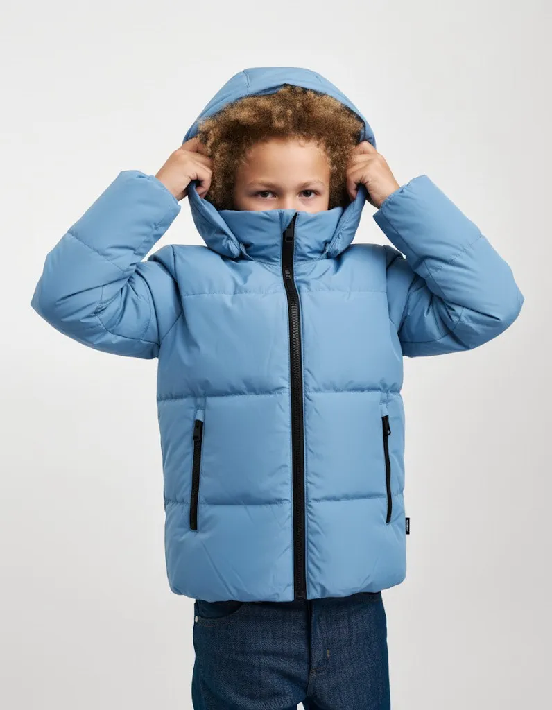 Куртка имеет утеплитель пух/перо (60%/40%), Fill Power 550, сертифицированный Control Union CU872203 в соответствии со стандартом Responsible Down Standard. Покрыта водо- и грязеотталкивающей пропиткой без содержания фторуглерода BIONIC-FINISH®ECO. Подкладка из гладкого полиэстера для легкого надевания. Пуховик имеет безопасный съемный капюшон, два кармана на молнии и резинку на подоле и манжетах. Прямой крой и стильный лаконичный дизайн делают эту модель универсальной, что прекрасно дополнит зимний гардероб ребенка.
