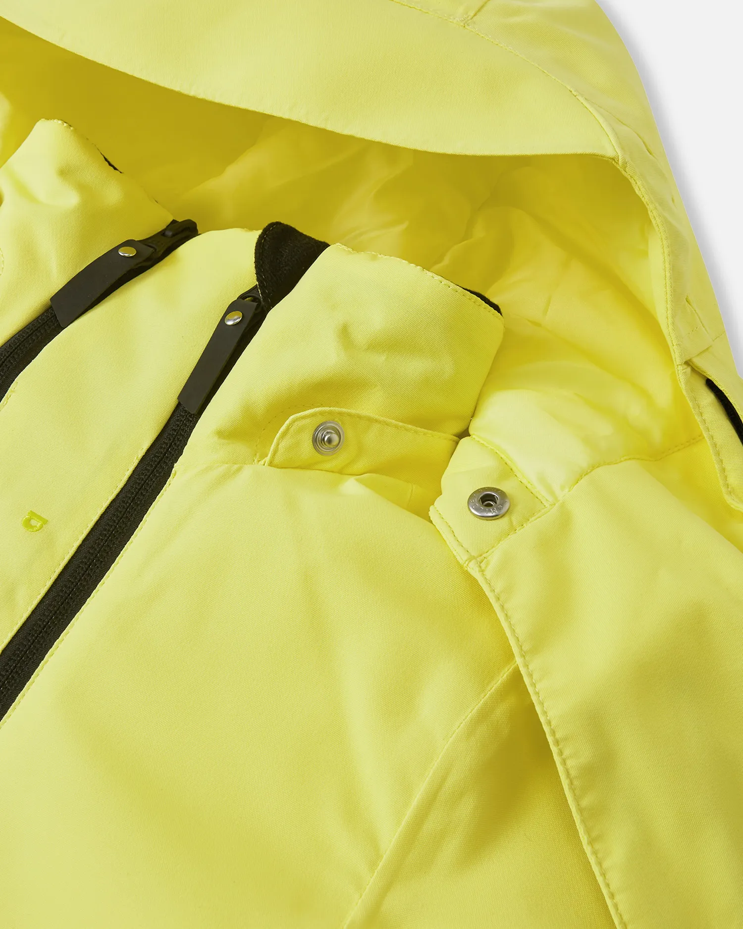 - Завышенный воротник и съемный капюшон обеспечивают дополнительную защиту от холода.