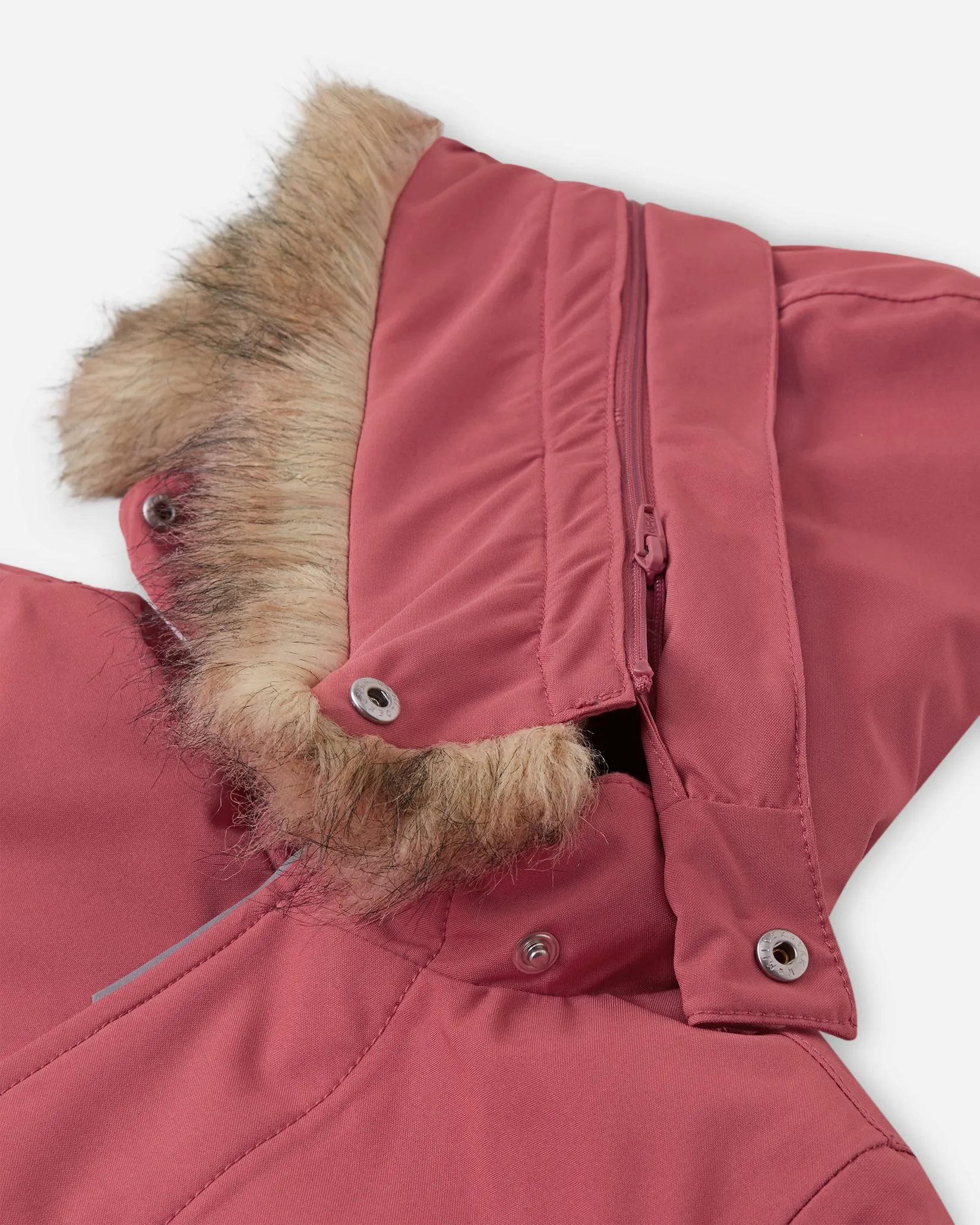 Эта утепленная куртка-парка для детей младшего возраста – настоящая находка. Все швы в ней запаяны для полной водонепроницаемости, а материал отталкивает не только воду, но и грязь. Сверхтеплый синтепоновый утеплитель очень эластичный и совсем не сковывает движений. Съемный капюшон со съемной отделкой из искусственного меха абсолютно безопасен. Он легко отстегнется, если случайно за что-нибудь зацепится. Кроме того, он обеспечивает дополнительную защиту от ветра. В двух накладных карманах уместятся все найденные сокровища и ценные мелочи.