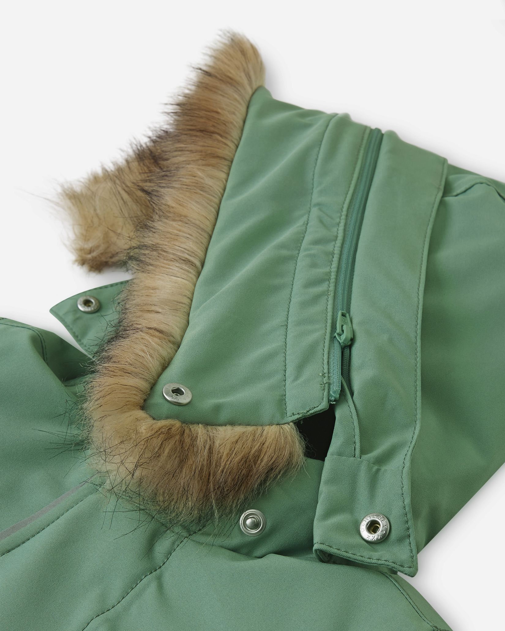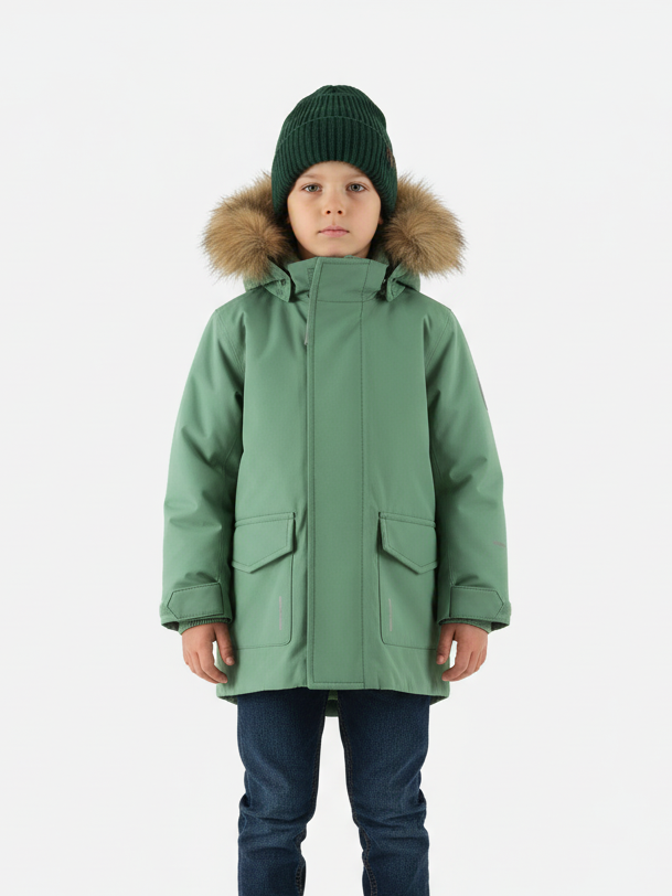 Эта утепленная куртка-парка для детей младшего возраста – настоящая находка. Все швы в ней запаяны для полной водонепроницаемости, а материал отталкивает не только воду, но и грязь. Сверхтеплый синтепоновый утеплитель очень эластичный и совсем не сковывает движений. Съемный капюшон со съемной отделкой из искусственного меха абсолютно безопасен. Он легко отстегнется, если случайно за что-нибудь зацепится. Кроме того, он обеспечивает дополнительную защиту от ветра. В двух накладных карманах уместятся все найденные сокровища и ценные мелочи.