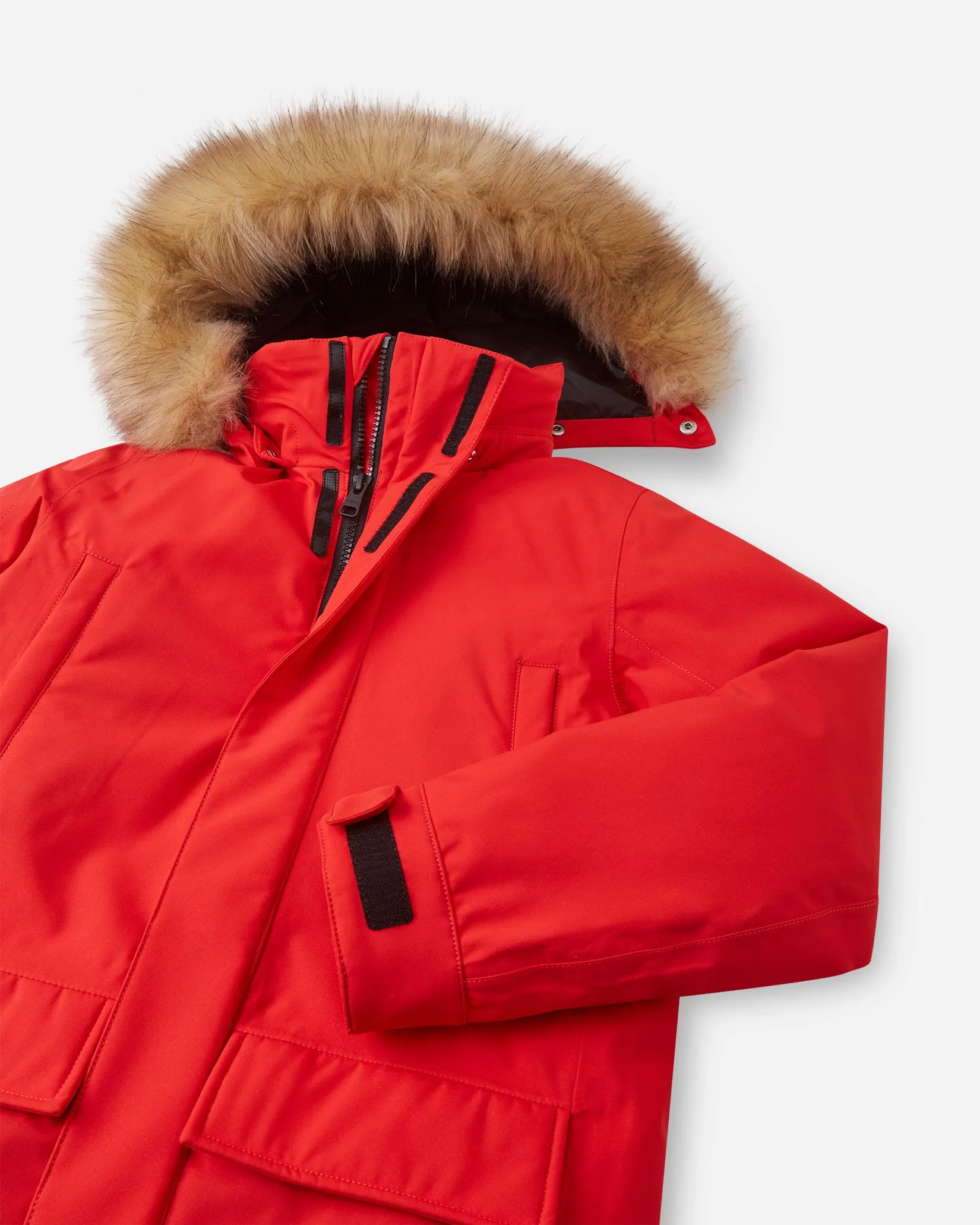 Эта ветрозащитная и водонепроницаемая куртка со всеми герметичными швами отталкивает воду и грязь, гарантируя, что ваш ребенок останется сухим и чистым. Утеплитель из пуха обеспечивает тепло, а дышащий материал помогает поддерживать комфортную температуру тела. Куртка оснащена безопасным съемным капюшоном, украшенным искусственным мехом, регулируемыми манжетами и регулировкой на талии, обеспечивающей плотную посадку. Благодаря множеству карманов, включая карман на молнии сбоку, нагрудные карманы и карманы с клапанами спереди, у вашего ребенка будет достаточно места для сокровищ. Более длинный крой обеспечивает дополнительную защиту от непогоды.