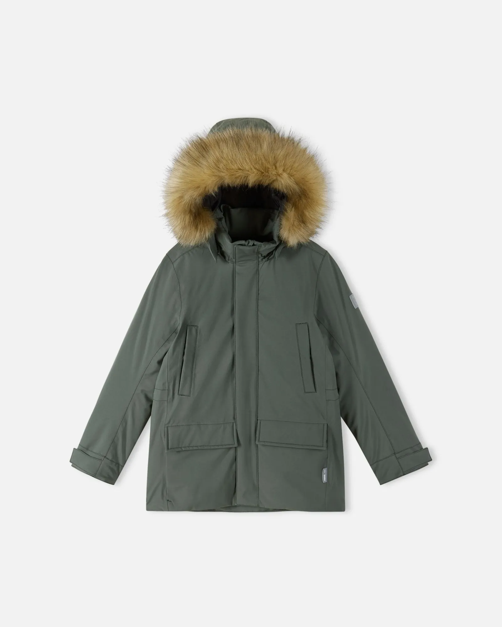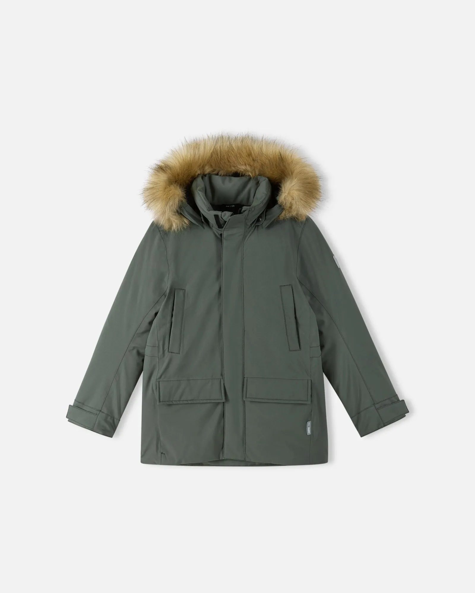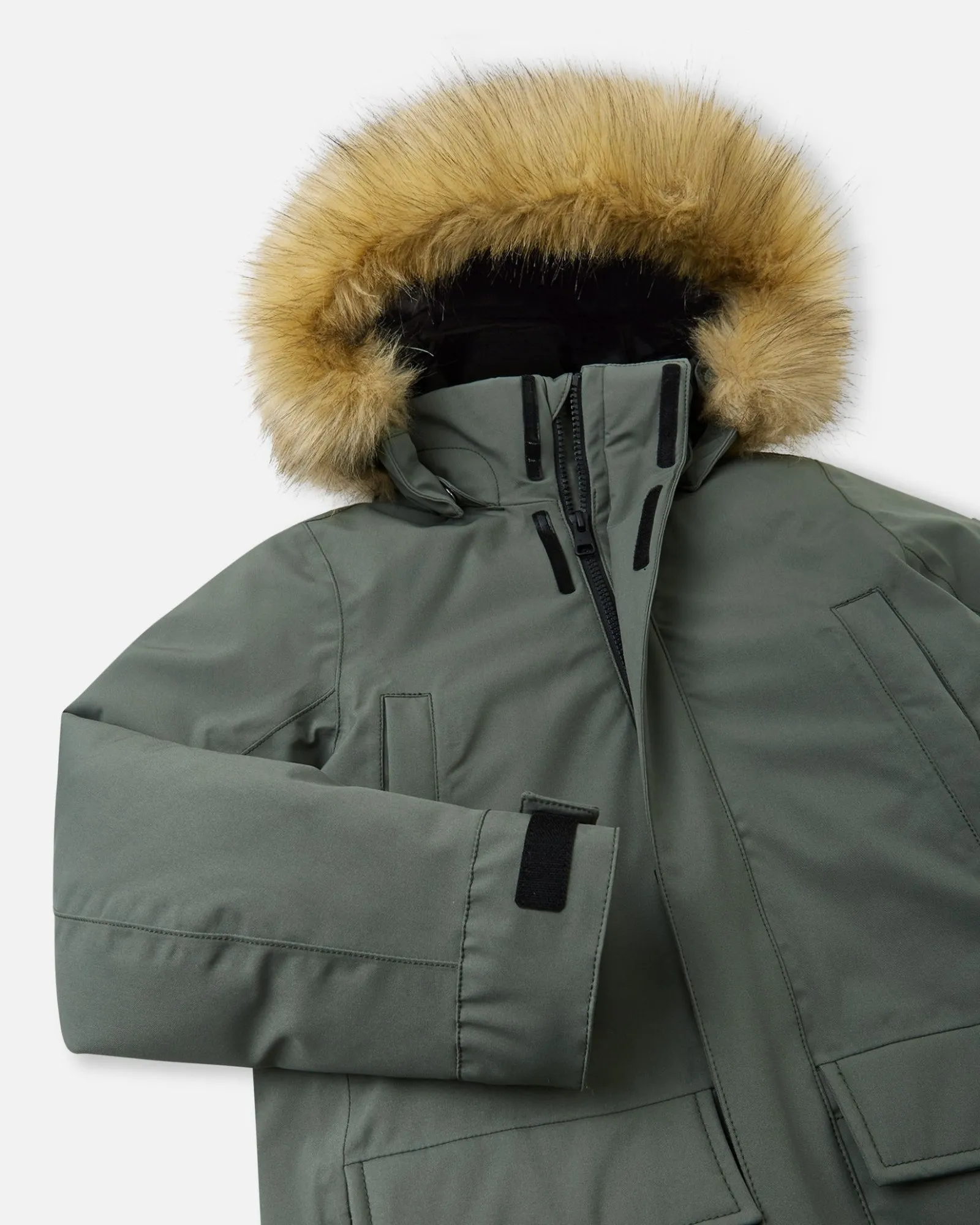 Эта ветрозащитная и водонепроницаемая куртка со всеми герметичными швами отталкивает воду и грязь, гарантируя, что ваш ребенок останется сухим и чистым. Утеплитель из пуха обеспечивает тепло, а дышащий материал помогает поддерживать комфортную температуру тела. Куртка оснащена безопасным съемным капюшоном, украшенным искусственным мехом, регулируемыми манжетами и регулировкой на талии, обеспечивающей плотную посадку. Благодаря множеству карманов, включая карман на молнии сбоку, нагрудные карманы и карманы с клапанами спереди, у вашего ребенка будет достаточно места для сокровищ. Более длинный крой обеспечивает дополнительную защиту от непогоды.