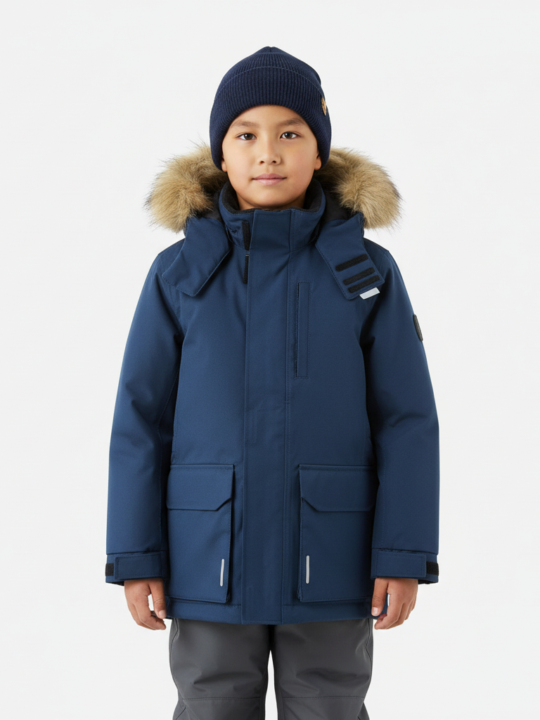 Зимняя парка изготовлена из водонепроницаемого материала с проклеенными швами и защищает от холода, гарантируя, что ваш ребенок останется в сухости и комфорте. Прочный материал хорошо дышит и устойчив к воде и грязи, что делает стирку легкой. 100% переработанный утеплитель обеспечивает приятное тепло. Для дополнительного комфорта парка имеет регулируемую талию, манжеты и безопасный съемный капюшон с отделкой из искусственного меха. Кроме того, эта модель имеет два удобных кармана с клапанами и нагрудный карман на молнии для маленьких сокровищ. Светоотражающие детали помогут сделать детей более заметными в темноте, а так же хорошей идеей будет повесить дополнительный светоотражатель на петлю, которая спрятана под правым клапаном переднего