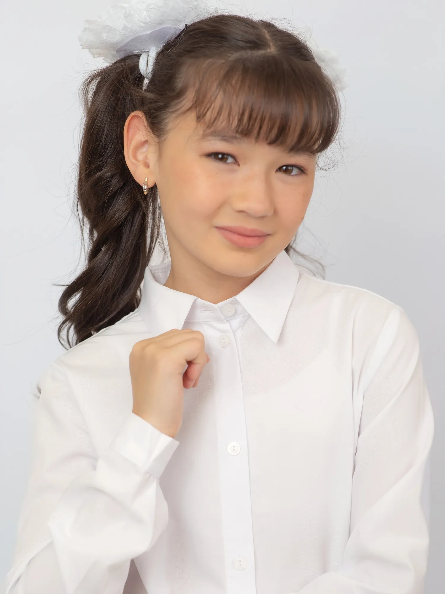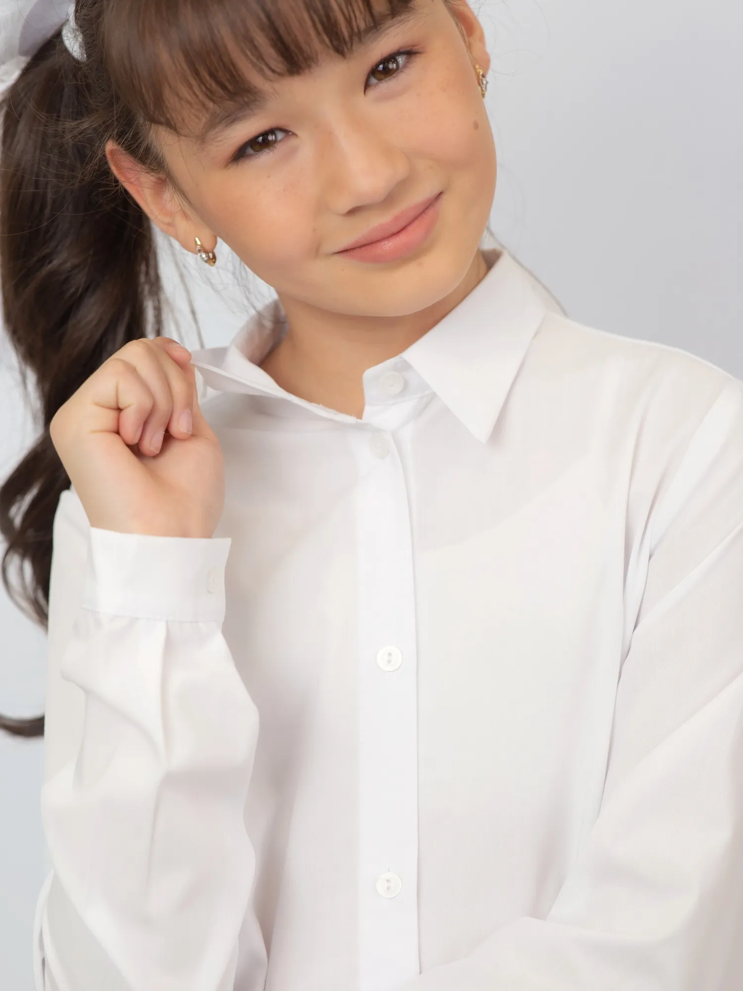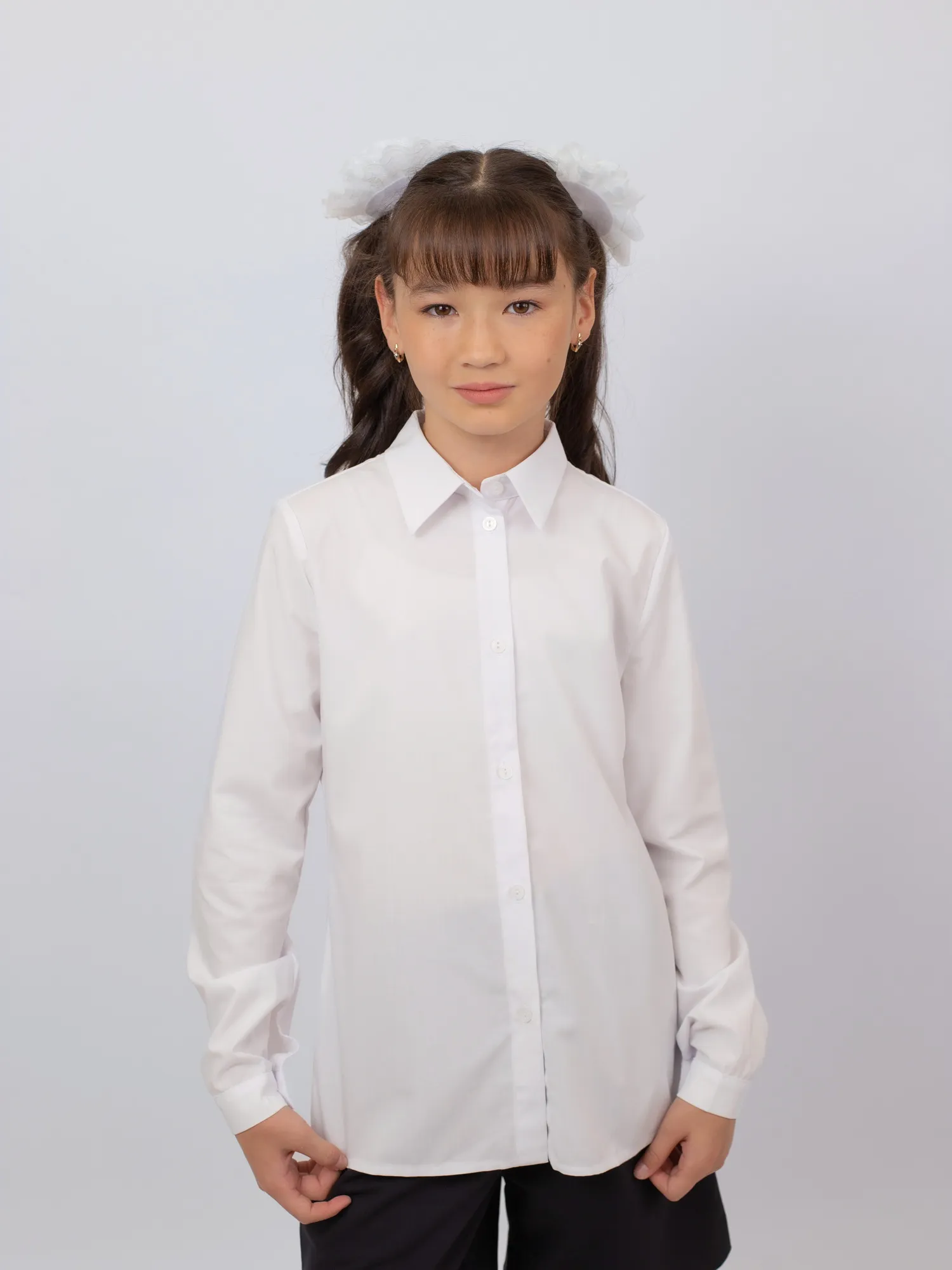 Блузка для девочек начальной и средней школы полуприлегающего силуэта. Лаконичный дизайн делает её универсальным вариантом для школы и повседневной носки. Классическая модель, которая легко сочетается с юбками, брюками и сарафанами.