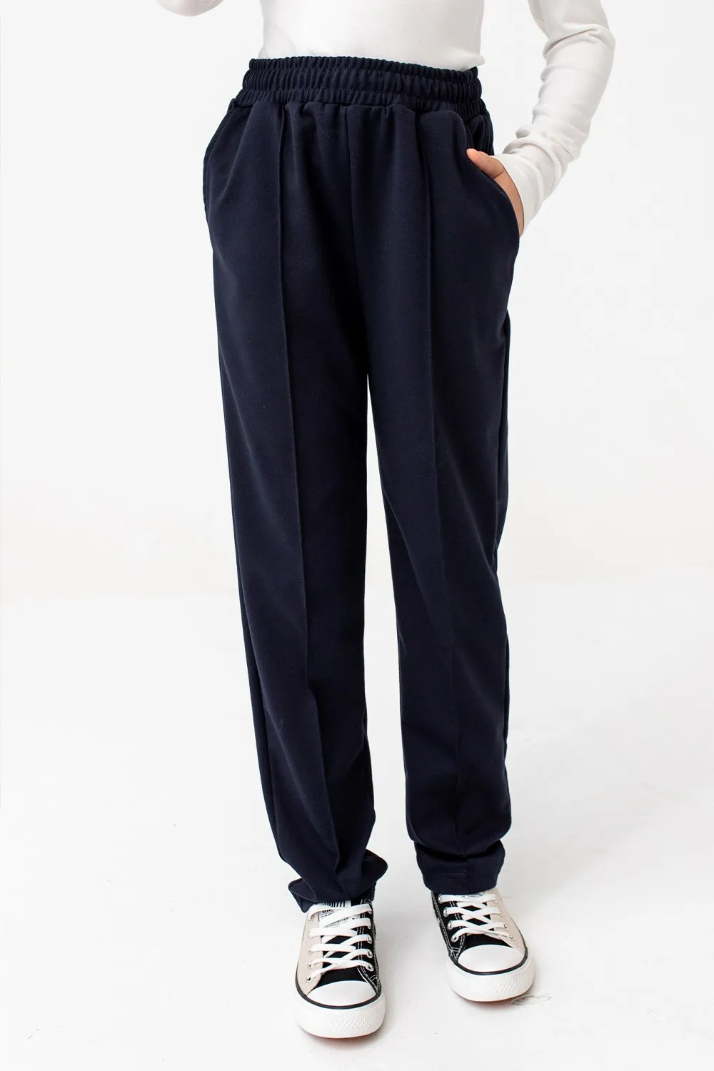 | Прямые школьные брюки со стрелками, выполнены из мягкой, приятной к телу ткани. Эластичный пояс обеспечивает комфортную посадку, а классический крой делает модель универсальной — подойдут как для школы, так и для повседневных образов. |