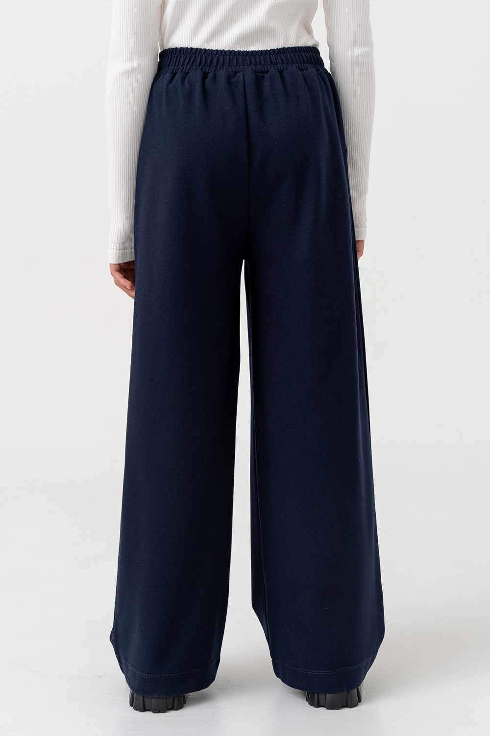 Элегантные брюки-палаццо с мягкими защипами на талии создают свободный силуэт и визуально вытягивают фигуру. Модель выполнена из плотного, держущего форму материала. Широкие прямые штанины не сковывают движений, обеспечивая комфорт в течение дня. Идеальны для школы, торжественных мероприятий и повседневного стиля.