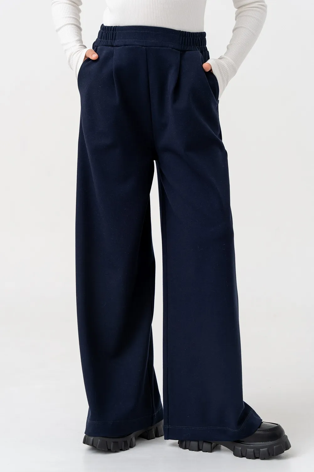 Элегантные брюки-палаццо с мягкими защипами на талии создают свободный силуэт и визуально вытягивают фигуру. Модель выполнена из плотного, держущего форму материала. Широкие прямые штанины не сковывают движений, обеспечивая комфорт в течение дня. Идеальны для школы, торжественных мероприятий и повседневного стиля.