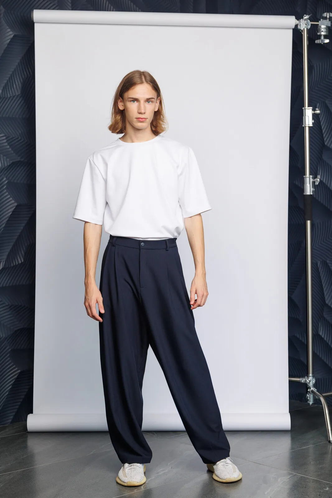 | Брюки для школьников — стильная модель унисекс, подходящая для мальчиков и девочек средней школы. Широкий крой с заужением к низу, складками у пояса и заниженной линией сидения обеспечивает комфорт и свободу движений. Застежка выполнена по типу "гульфик", пояс снабжен перфорированной резинкой для регулировки объема талии. По бокам — удобные карманы. Без подкладки. Современный дизайн для активных и уверенных в себе школьников. |