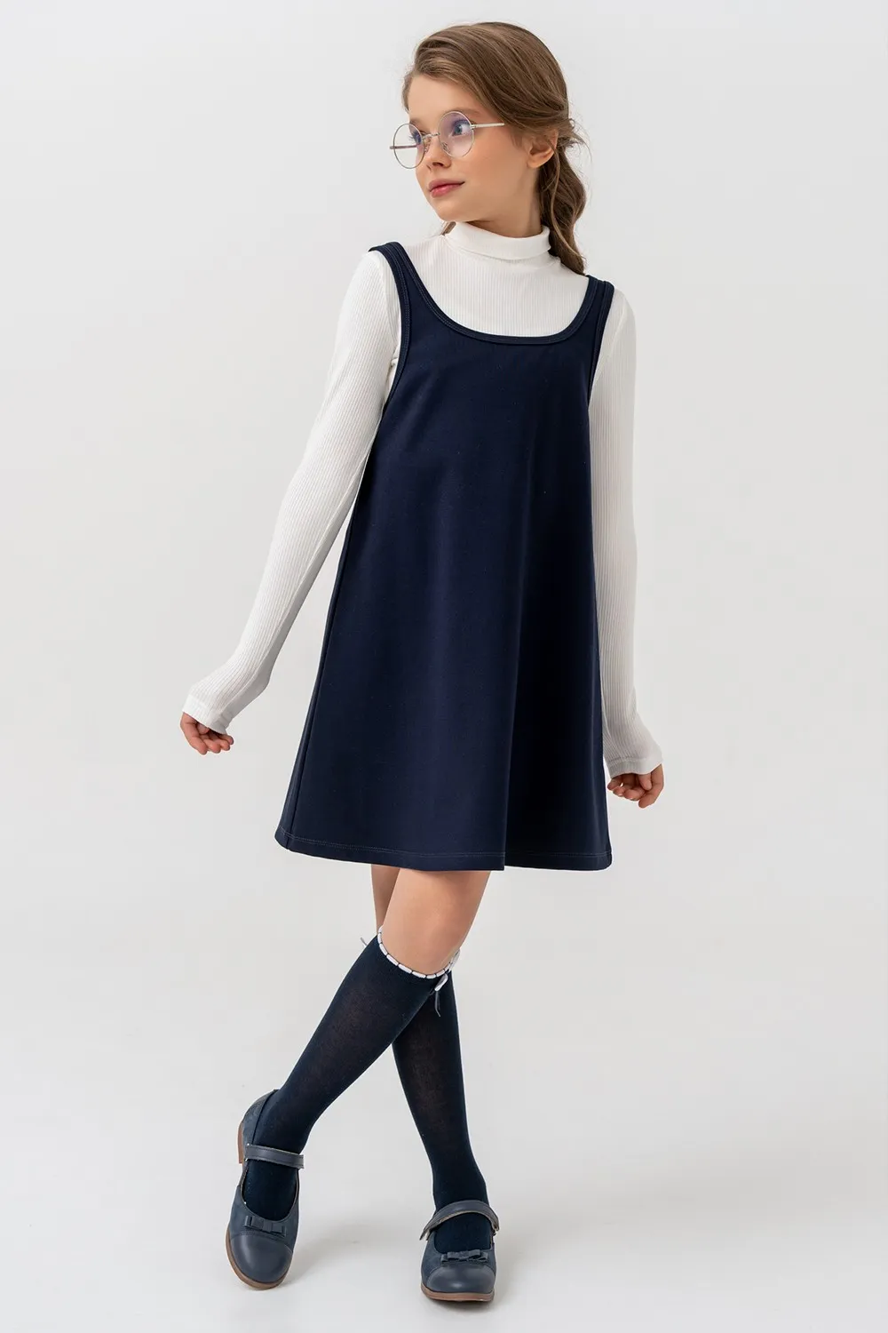 | Стильный сарафан прямого кроя с лаконичным передом и акцентной деталью на спинке. Декоративный элемент делает образ оригинальным, сохраняя при этом строгость школьного стиля. Удобная посадка и мягкий материал обеспечивают комфорт на весь день. Идеально сочетается с водолазками и блузками. |