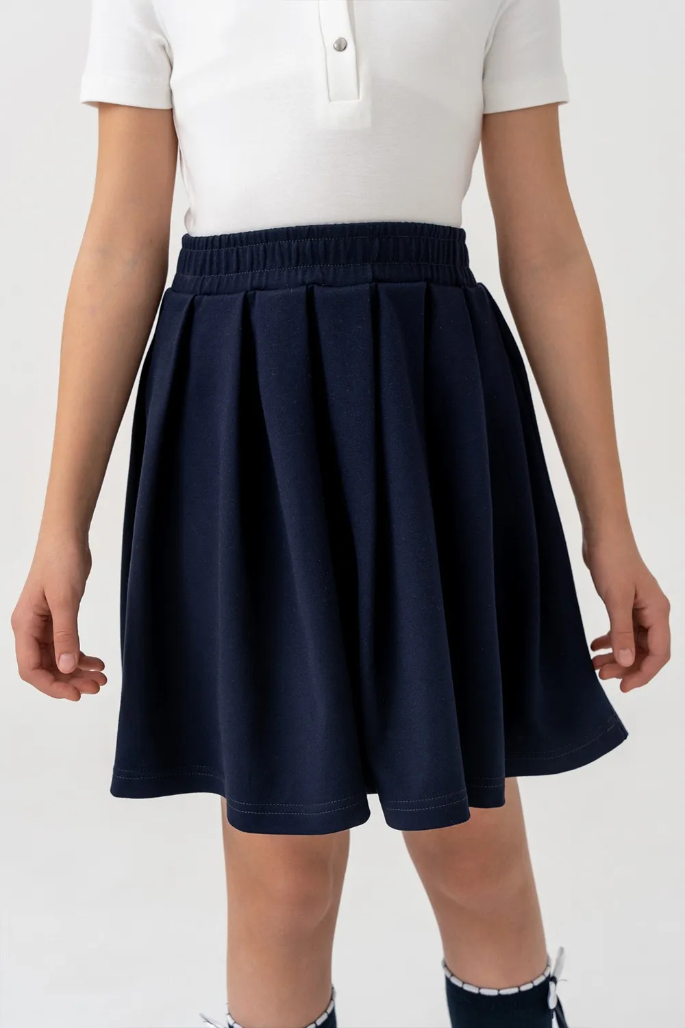| Классическая юбка со складками — удобный и практичный вариант для школы. Модель держит форму, не сковывает движений и обеспечивает аккуратный внешний вид. Эластичный пояс обеспечивает комфортную посадку. Легко сочетается с рубашками, жилетами и пиджаками. |