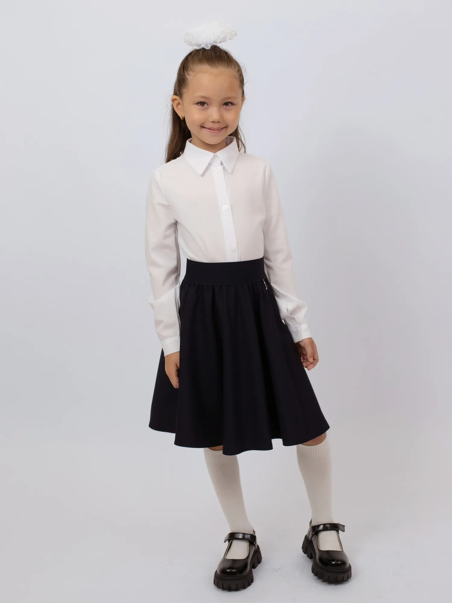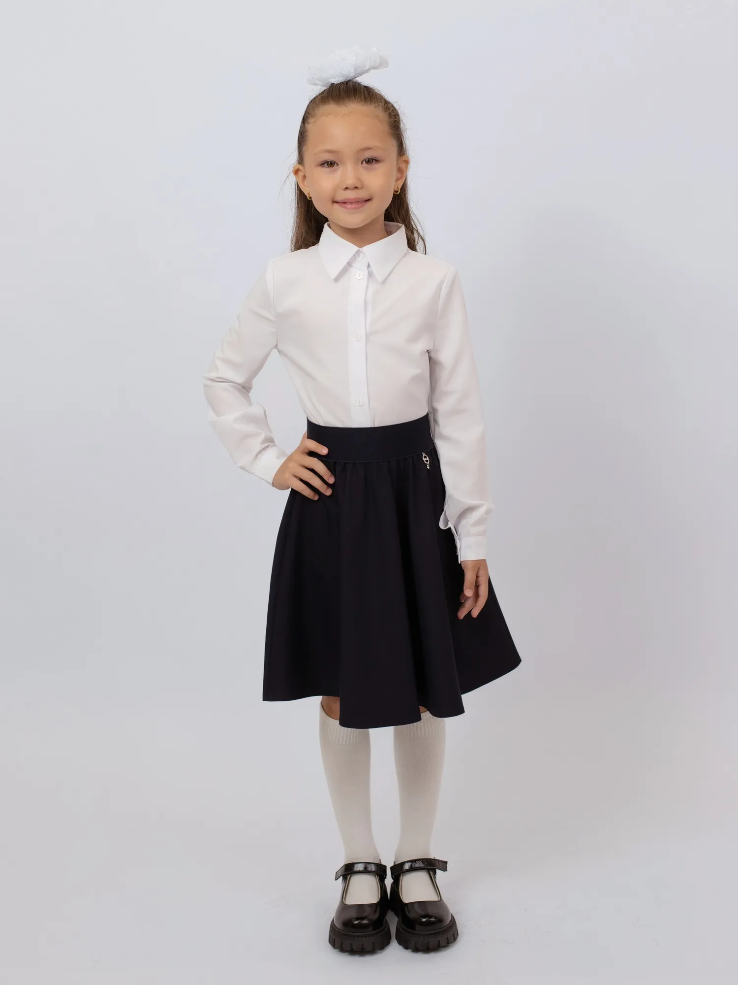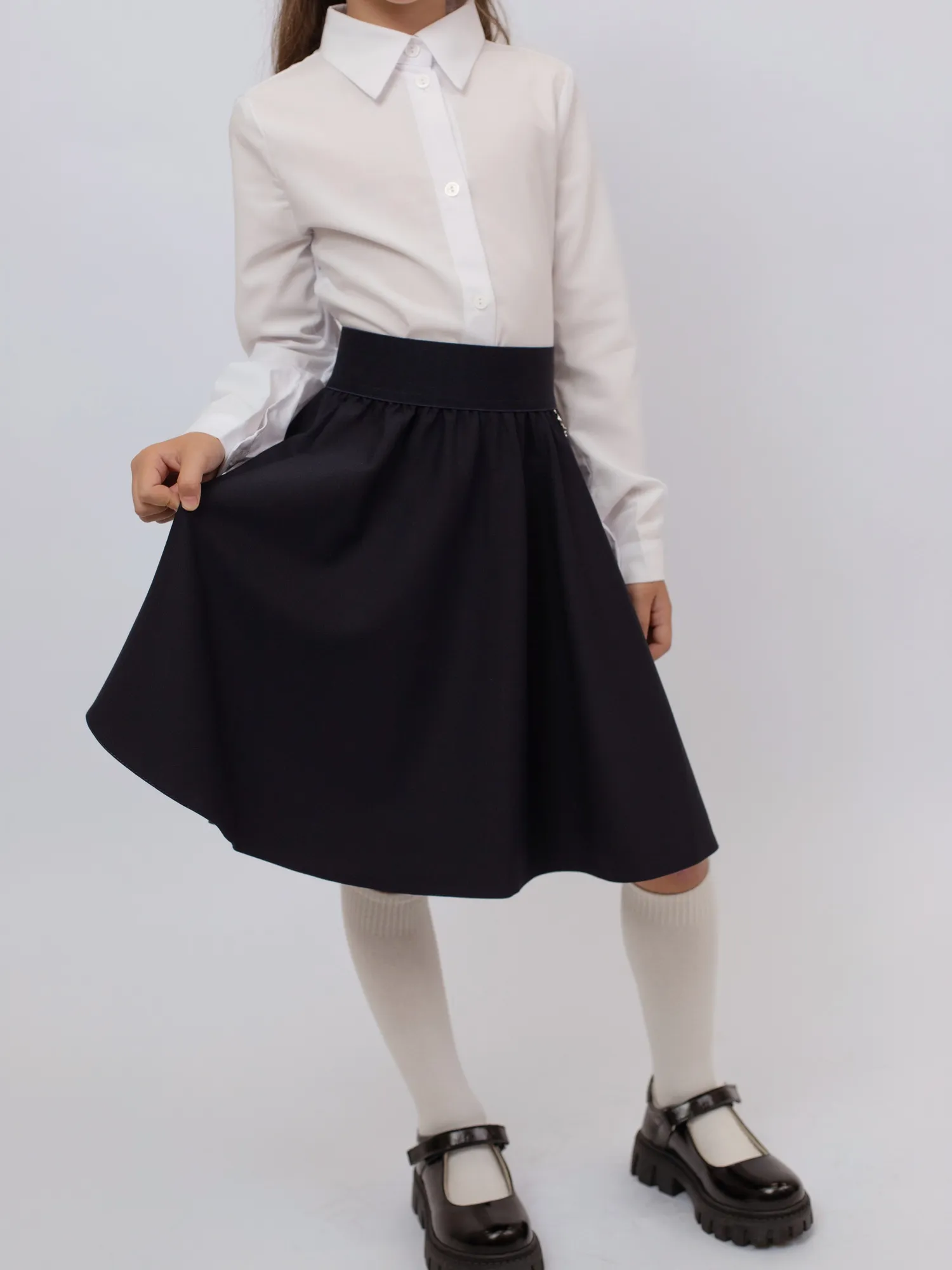 Юбка для девочек силуэта "полусолнце" — удобная и стильная модель на каждый день. Пояс выполнен из широкой ткацкой резинки в тон изделия, обеспечивая комфортную посадку. Карманы в боковых швах добавляют практичности, а декоративный шильд на поясе завершает образ.