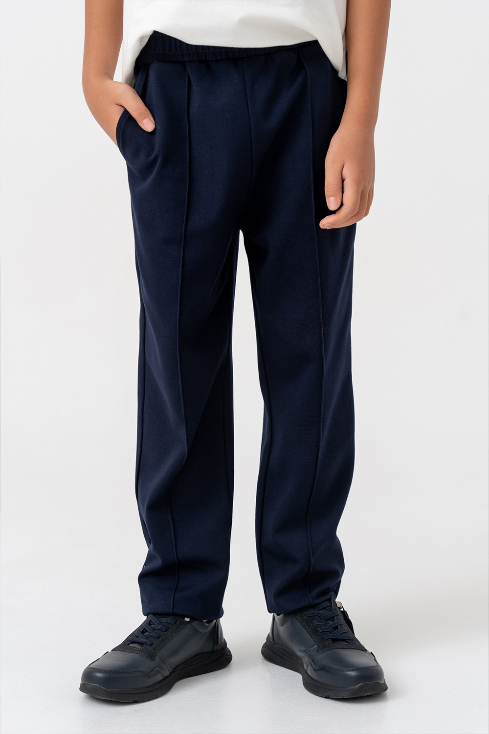 Классические школьные брюки зауженного кроя. Аккуратные стрелки придают образу строгость и опрятность. Модель выполнена из плотного материала, сохраняющего форму. Удобная посадка и современный силуэт делают брюки универсальным выбором для школы и официальных мероприятий.