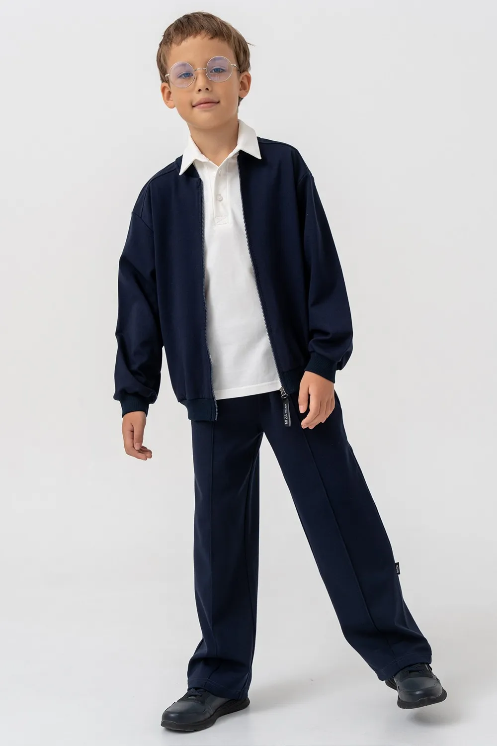Бомбер свободного кроя — удобный и стильный вариант для школы. Застёжка на молнию спереди обеспечивает лёгкое надевание. Воротник-стойка, манжеты и пояс выполнены из эластичного трикотажа в рубчик, что гарантирует комфортную посадку. Лаконичный дизайн легко сочетается с брюками, рубашками и футболками. Идеален для повседневной школьной формы.
