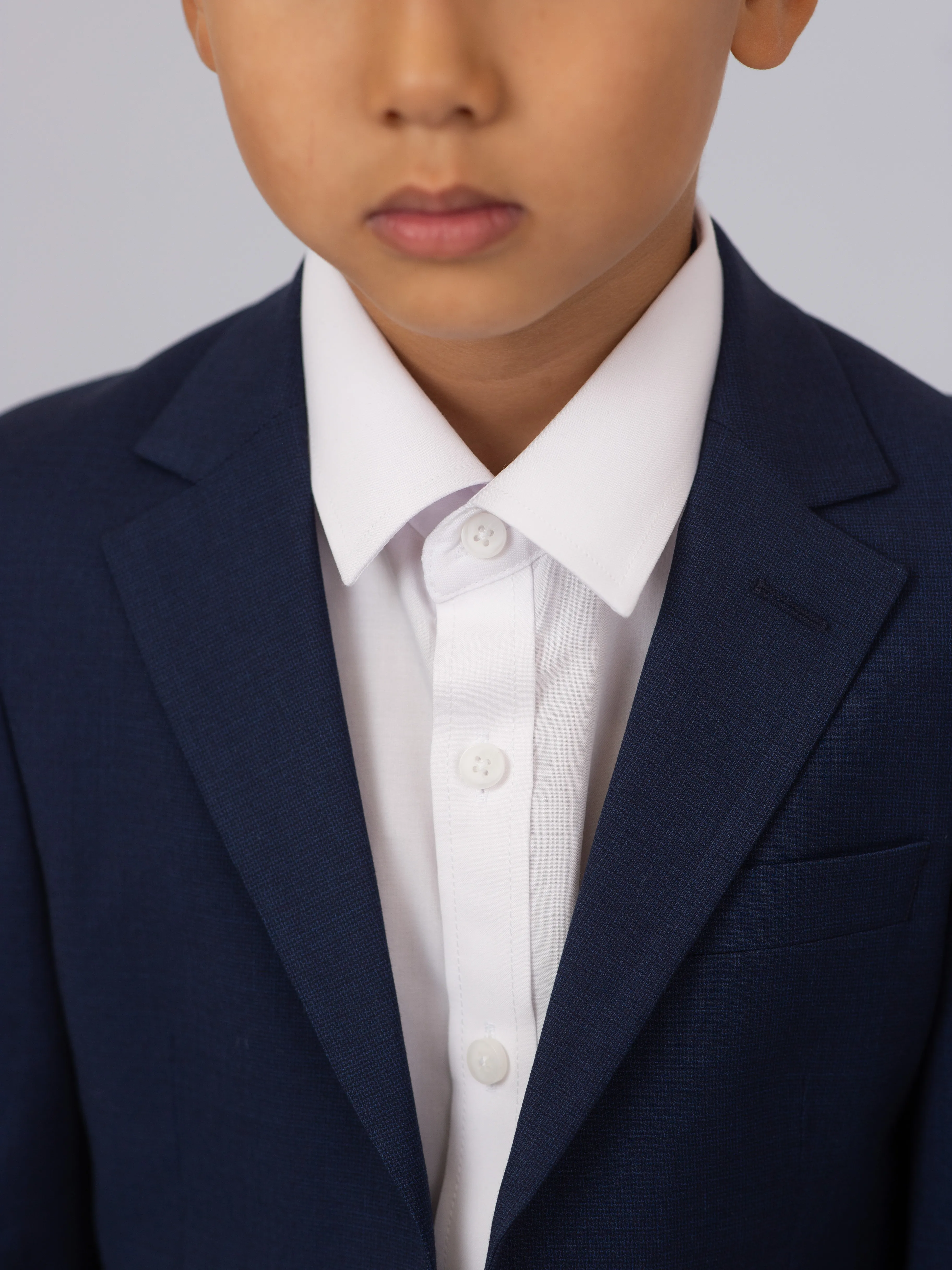 Пиджак прямого кроя с застёжкой на пуговицы и классическим воротником хорошо сидит по фигуре, подчёркивая аккуратный и опрятный вид ученика. Брюки со стандартной посадкой, прямого силуэта, не стесняют движений и подходят для повседневной носки.
