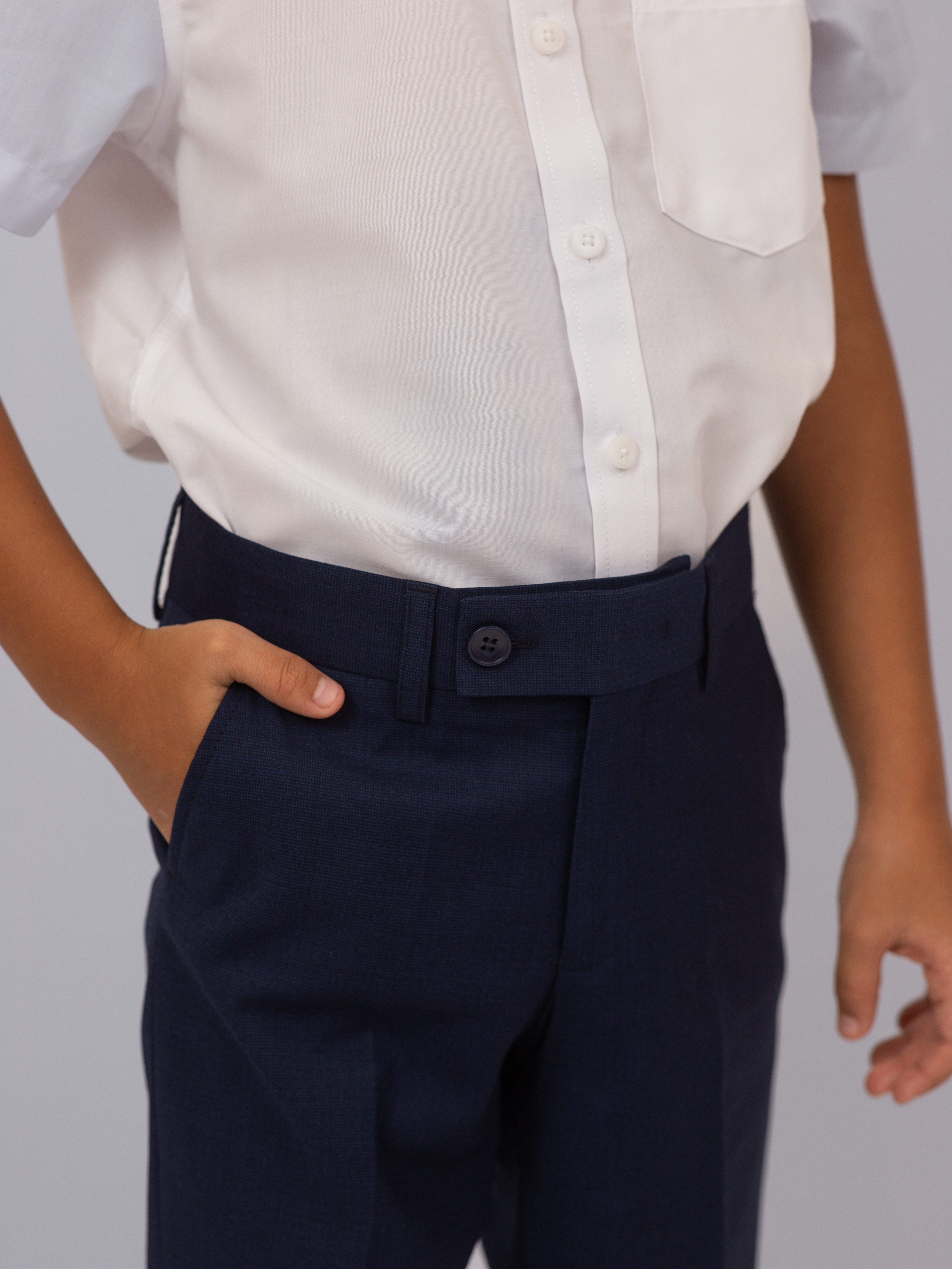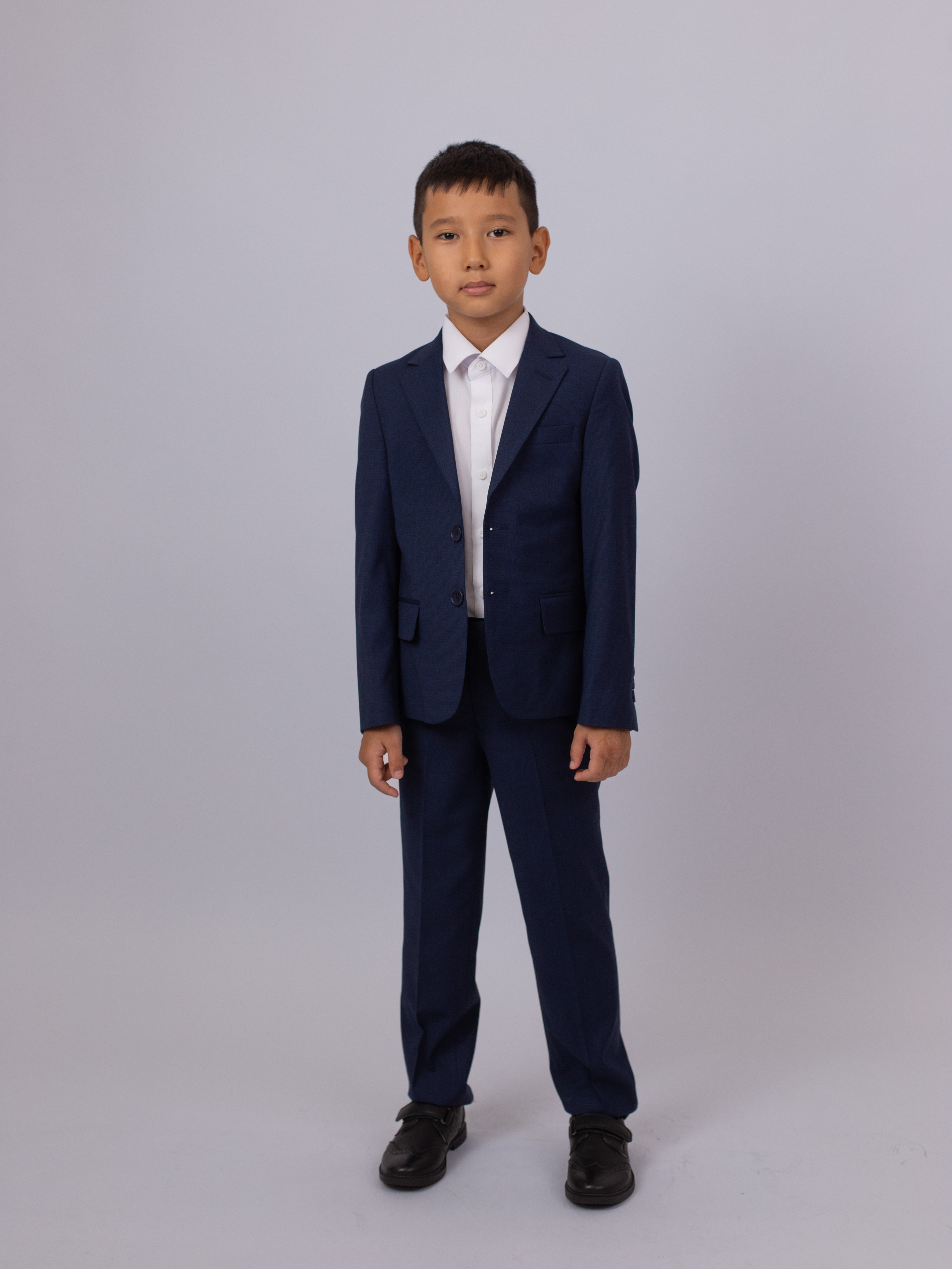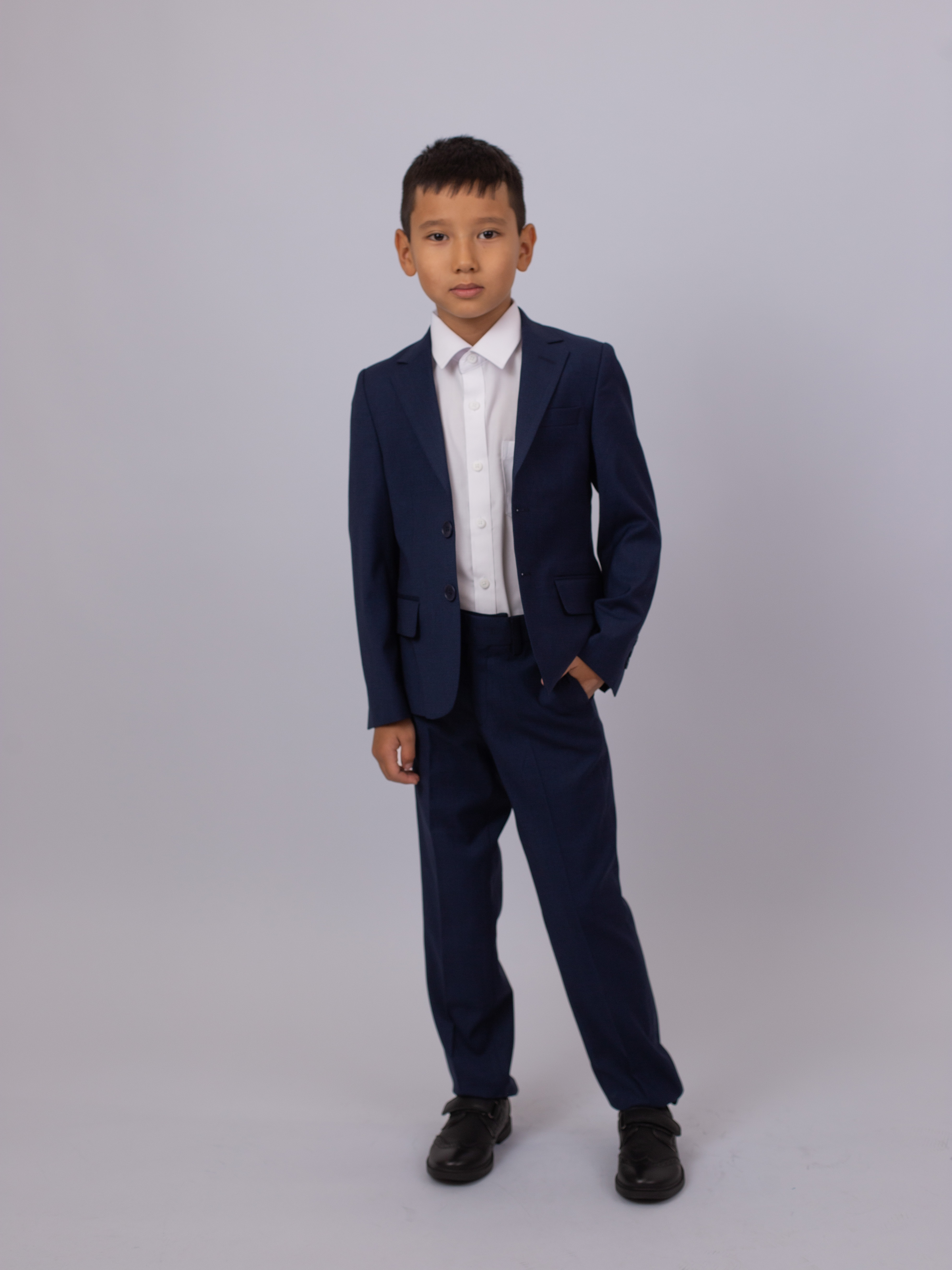 Пиджак прямого кроя с застёжкой на пуговицы и классическим воротником хорошо сидит по фигуре, подчёркивая аккуратный и опрятный вид ученика. Брюки со стандартной посадкой, прямого силуэта, не стесняют движений и подходят для повседневной носки.