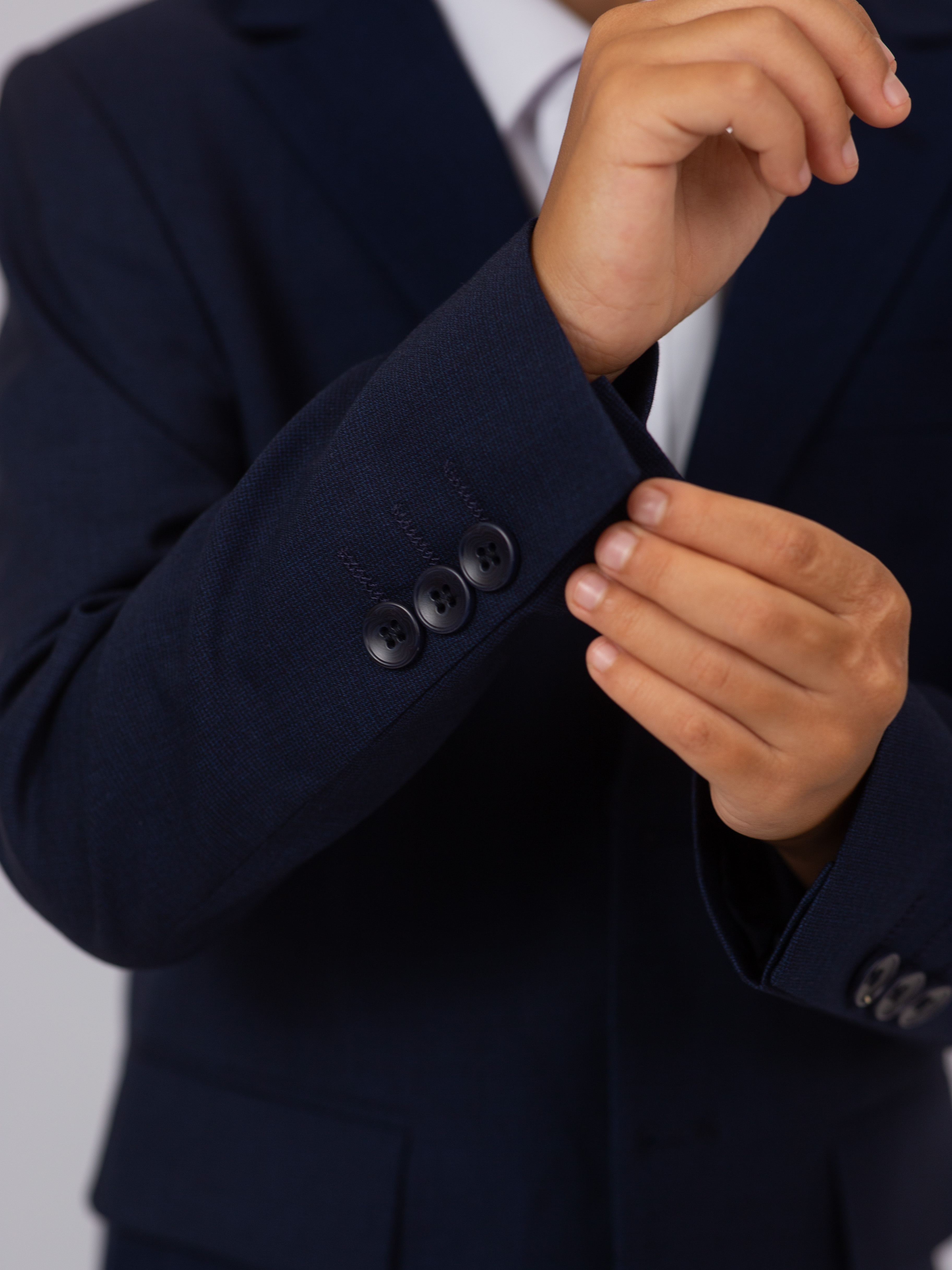 Классический школьный костюм для мальчика, состоящий из пиджака и брюк, выполнен из практичной и износостойкой ткани (65% полиэстер, 35% вискоза). Такой состав материала обеспечивает комфорт в течение всего учебного дня, устойчивость к сминанию и легкость в уходе.