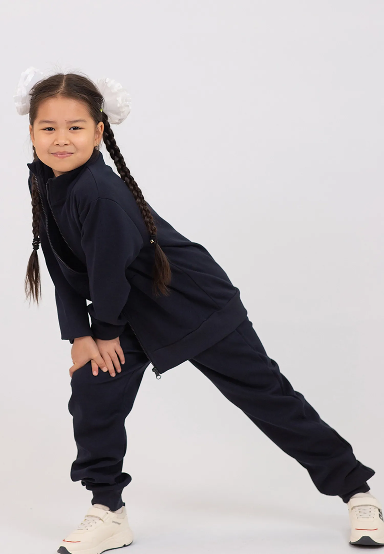 Универсальный спортивный костюм, идеально подходящий для уроков физкультуры и повседневной активности в школе. Состоит из толстовки и спортивных брюк, выполнен из натурального материала — 100% хлопка.